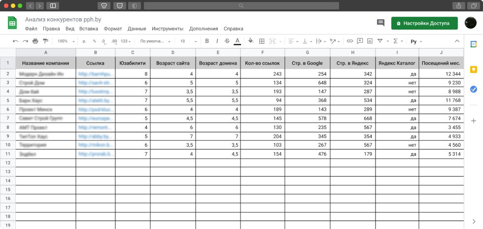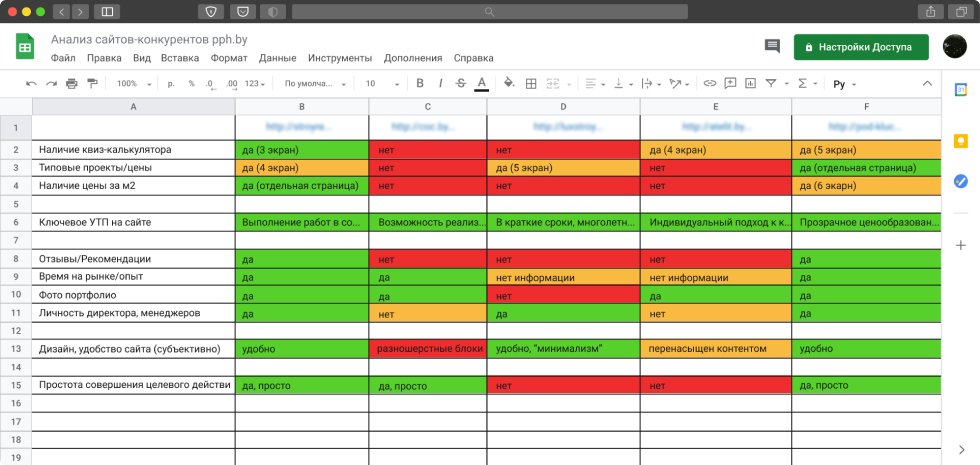 Отдельный акцент сделали на факторах доверия и конкурентном анализе. Команда проверила соответствие сайта требованиям поисковых систем и наличие YMYL-факторов: отзывов, контактов, портфолио, страницы «О нас» и других доверительных элементов. Также изучили структуру конкурентов из топа, наполнение их страниц и подходы к внешней оптимизации, чтобы использовать эти данные в ссылочной стратегии и в доработке сайта.