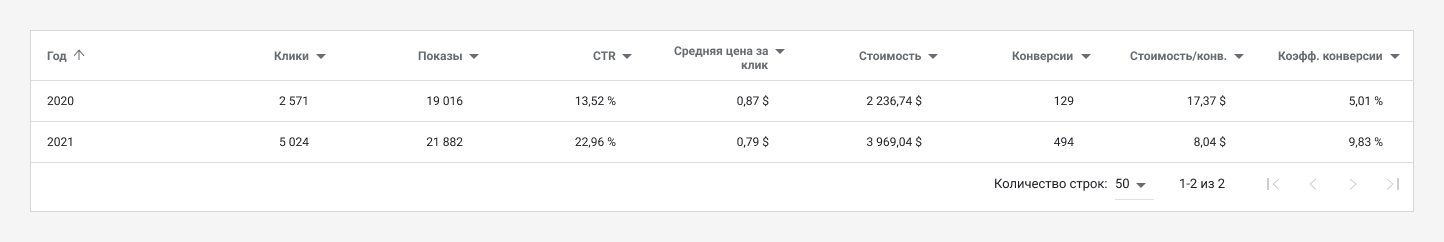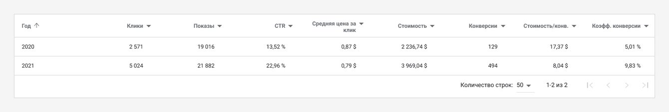 В Google Ads количество конверсий выросло со 129 до 494, а цена заявки снизилась более чем в 2 раза с 17,37 $ до 8,04 $. Эти результаты стали возможны не только за счет настройки кампаний, но и за счет роста конверсии сайта.