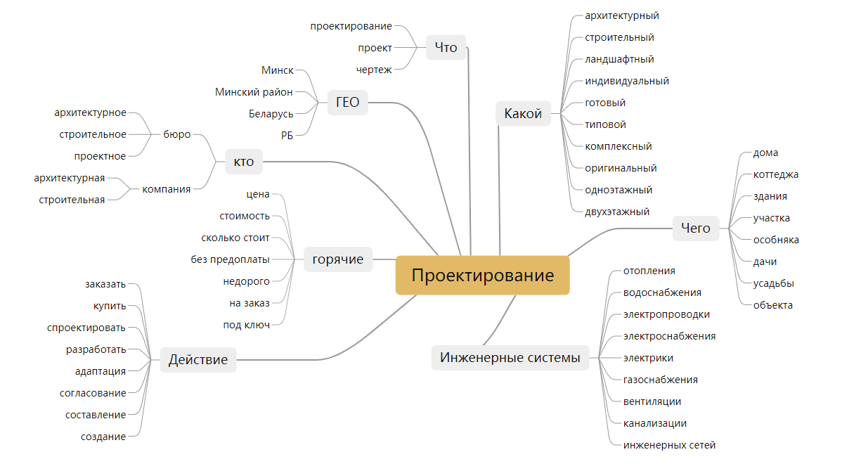 Работу начали с исследования рынка в Яндексе и Google по ключевым запросам, связанным со строительством и проектированием домов в нужном регионе. Отдельно проанализировали сезонность спроса, чтобы понять, когда запуск рекламы даст лучший эффект, и изучили целевую аудиторию: что влияет на выбор подрядчика, какие барьеры мешают оставить заявку и чего клиент ждет от компании в этой нише.