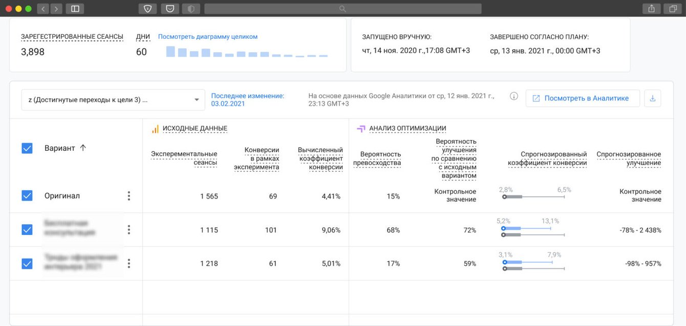 На основе этих данных регулярно проводили A/B-тесты и вносили изменения в сайт. Особенно важной стала работа с первым экраном: команда протестировала несколько офферов, поэтапно сравнивая заголовки и буллиты, чтобы найти вариант, который дает лучшую конверсию. Здесь реклама и посадочная страница работали как единая система: улучшение сайта сразу влияло на цену лида и общий объем обращений.