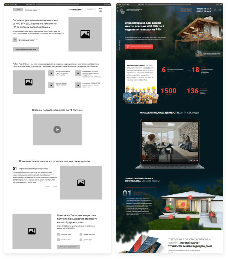 После анализа в коммуникации сделали акцент на компетентности компании, способности вести проектирование и строительство в связке и готовности владельца лично давать гарантии на все виды работ. Это стало основой для последующей упаковки сайта, рекламных сообщений и продвижения строительного направления как полноценного продукта, а не дополнительной услуги.