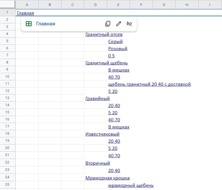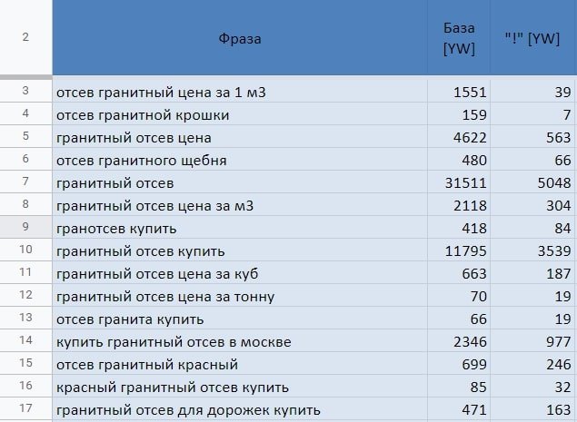 Под каждую страницу собрали семантическое ядро и разработали тексты, учитывающие ключевые фразы и интент пользователя. Например, для раздела «Гранитный отсев» были проработаны запросы: