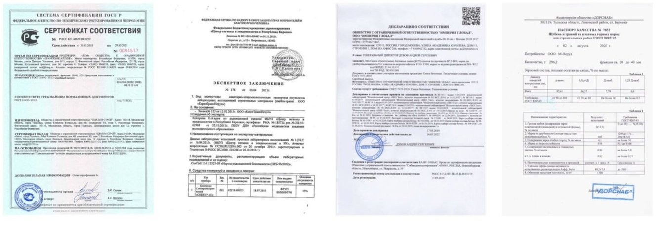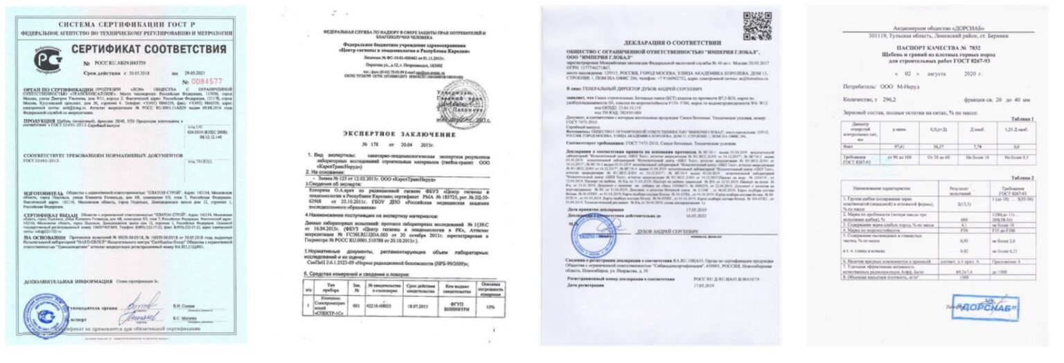 - сертификаты, декларации соответствия и паспорта качества по каждому виду товара.