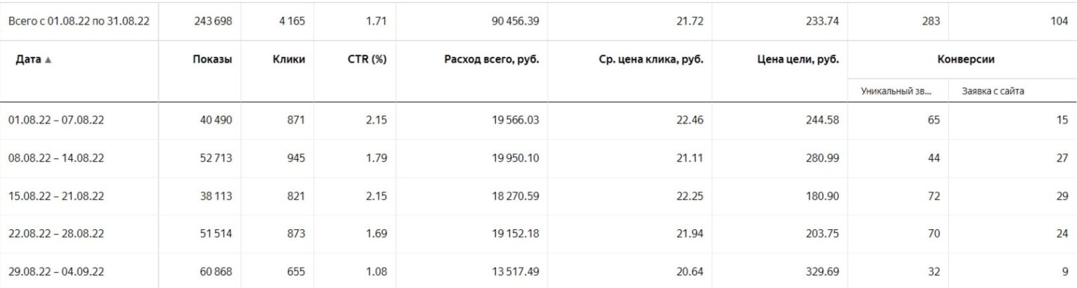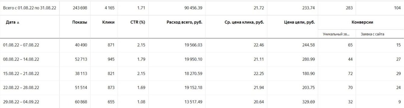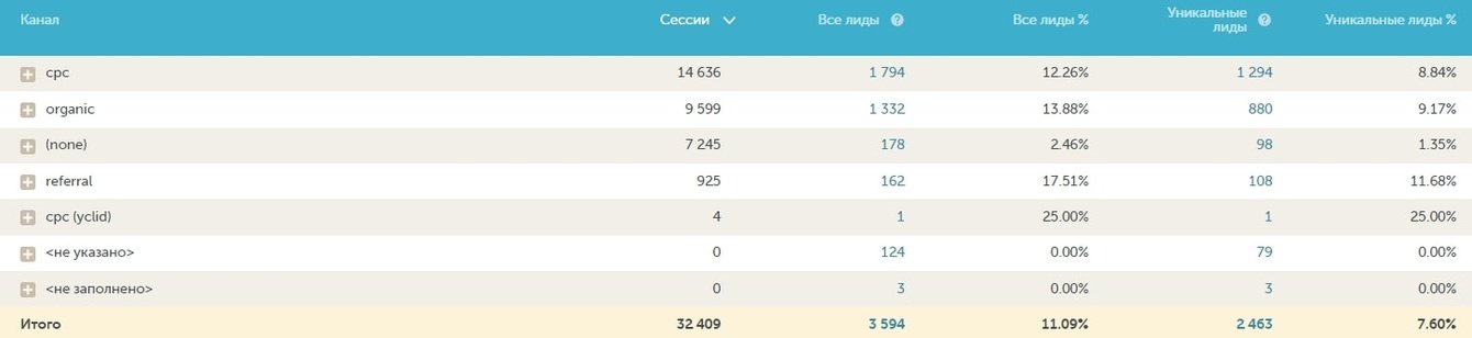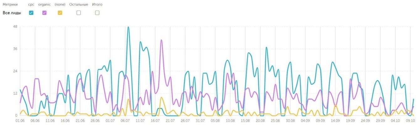 - порядка 400 уникальных лидов из органического поиска Яндекса и Google.