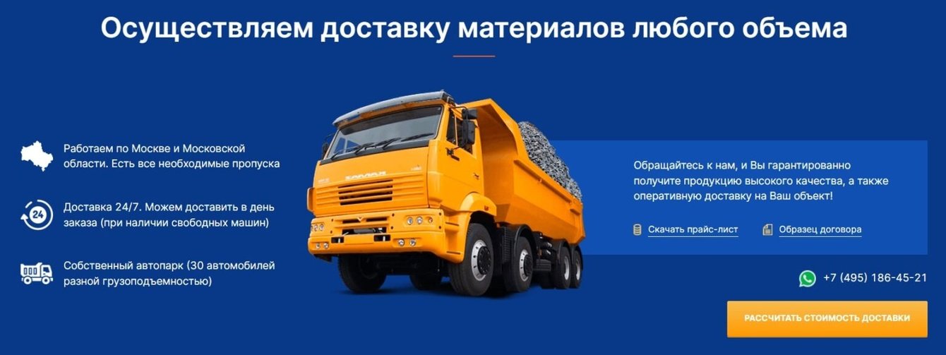 Анализ целевой аудитории и конкурентов показал: в сегменте поставок нерудных строительных материалов потенциальных заказчиков в первую очередь интересует ясность и конкретика, а не визуальные эффекты. Дизайн играет второстепенную роль — важно, чтобы сайт быстро отвечал на главный вопрос: почему стоит купить именно у этой компании?