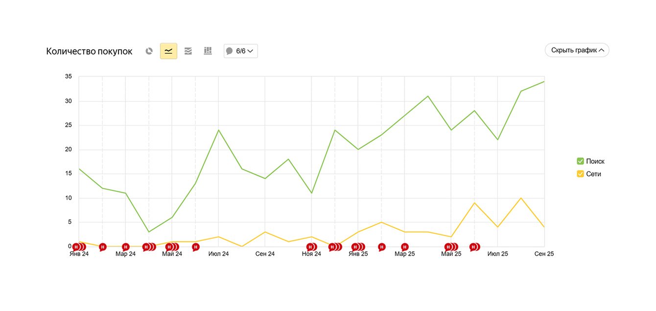 Смещение фокуса на категорийный спрос и четкое разделение брендового и небрендового трафика позволило диверсифицировать источники роста: