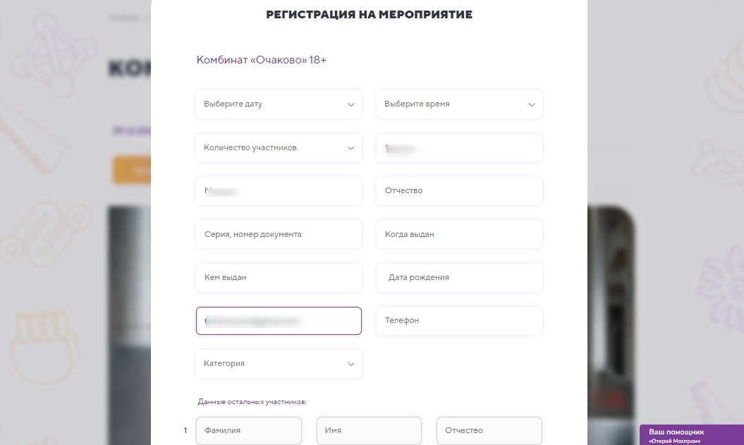 Необходимо было изучить готовый код и гармонично внести в него новые модули и функционал. В основном касающийся работы формы записи на мероприятия.