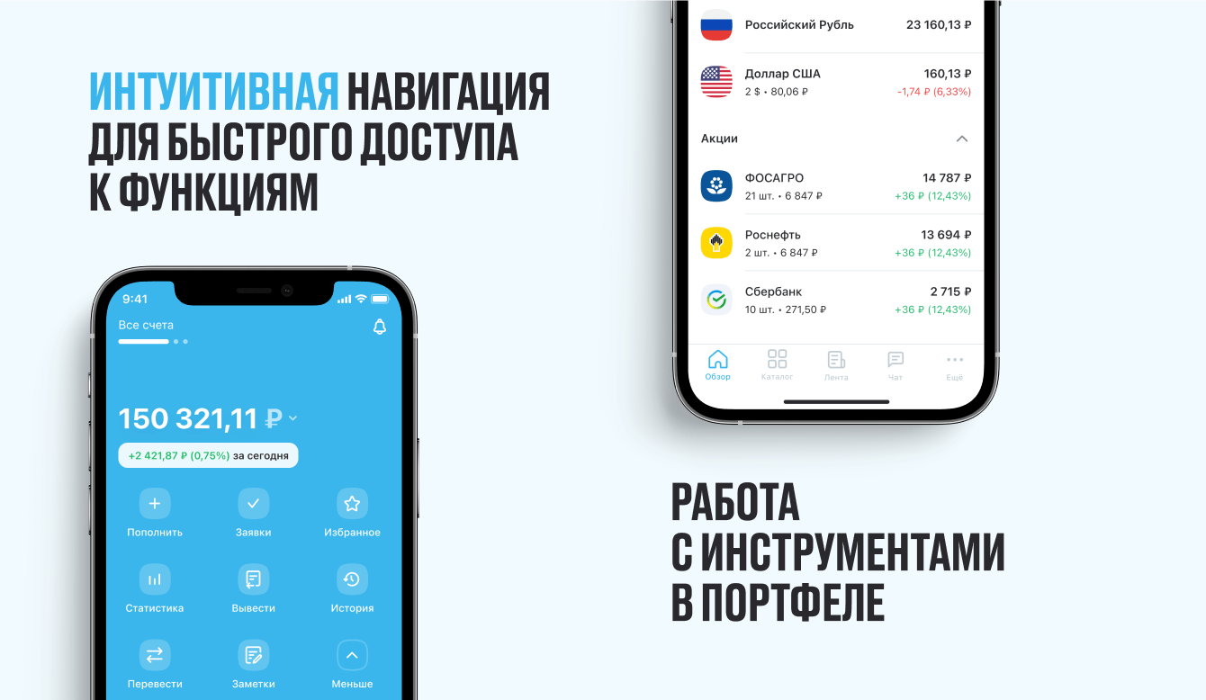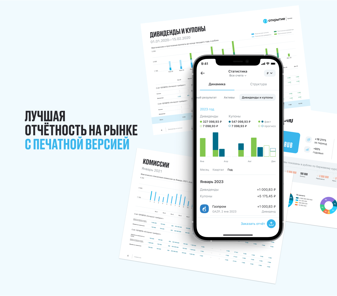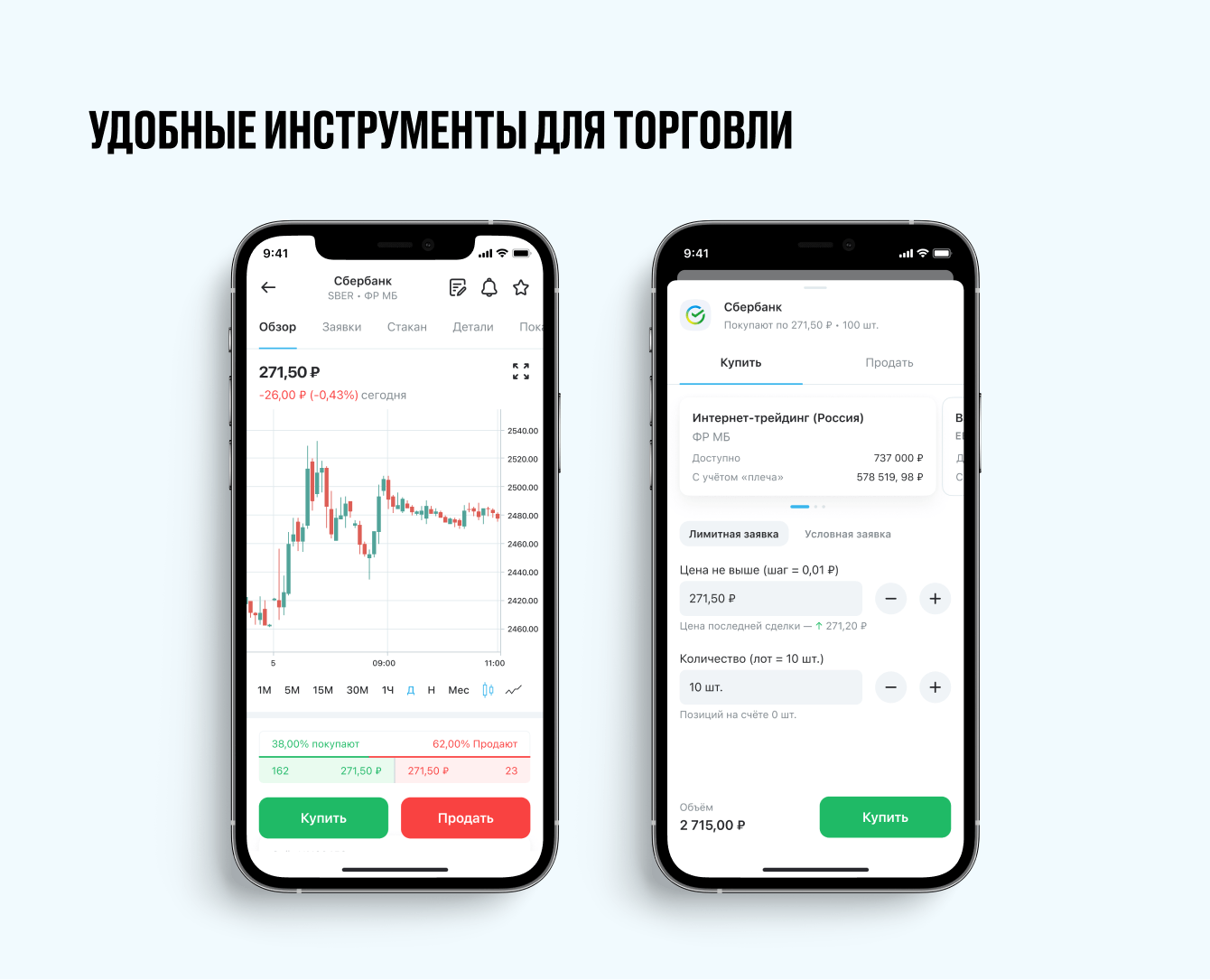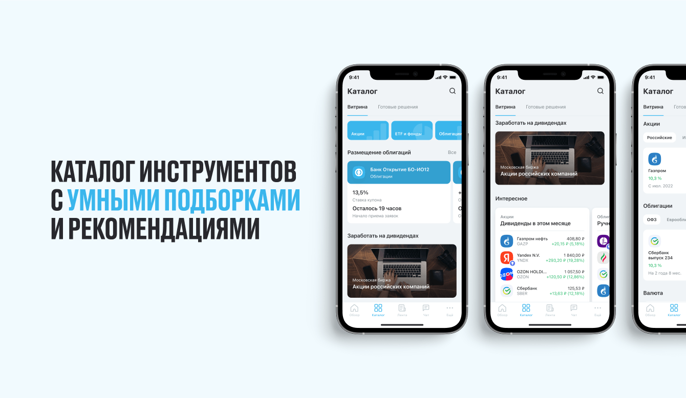 Мы разработали мобильный личный кабинет «Открытие Инвестиции». В нем пользователи управляют брокерскими счетами и акциями, переводят деньги, покупают ценные бумаги, торгуют, инвестируют и зарабатывают прямо со смартфона.