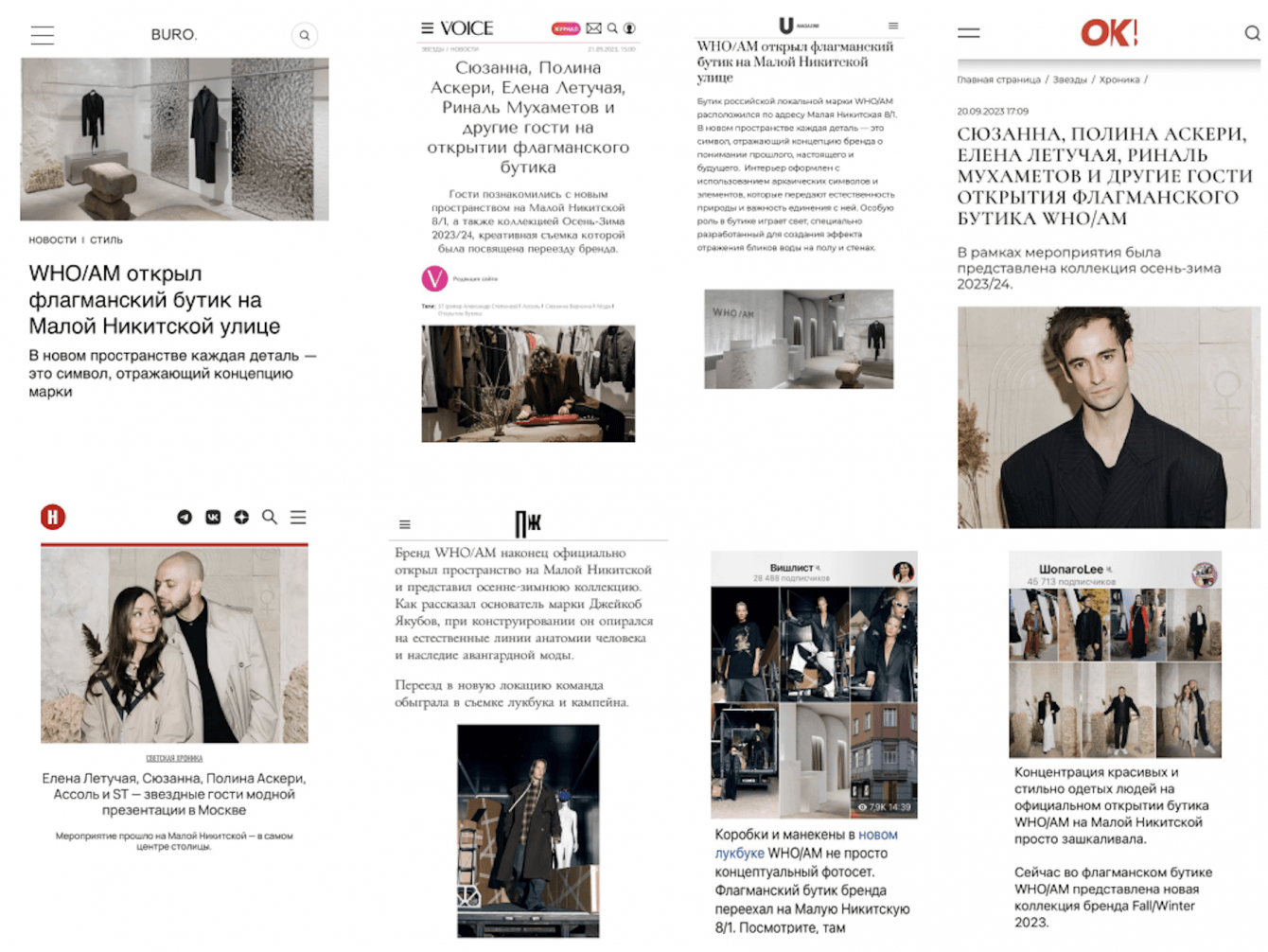 - Обозначить новую модную точку на карте столицы. Провести открытие флагманского бутика под ключ для друзей, инфлюенсеров и СМИ;