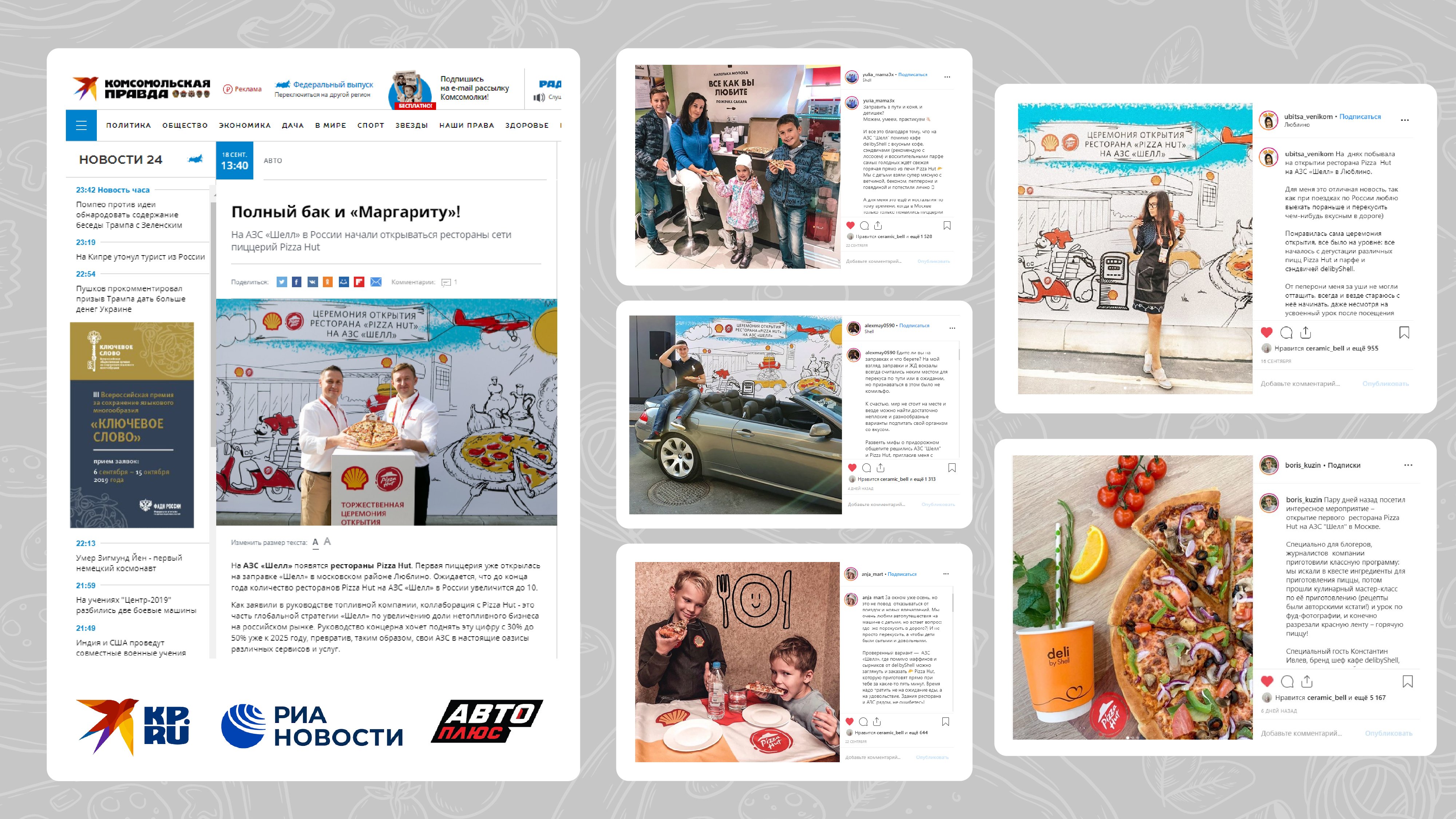 Перед нами стояла важная задача - осветить стратегическое партнерство и открытие первого ресторана Pizza Hut на АЗС Shell в России. Мы благодарны двум уважаемым компаниям за оказанное доверие и возможность реализовать этот важный проект не только с точки зрения информационного сопровождения, а и яркой эмоциональной креативной идеи, которая нашла отражение в игровом формате самого мероприятия.