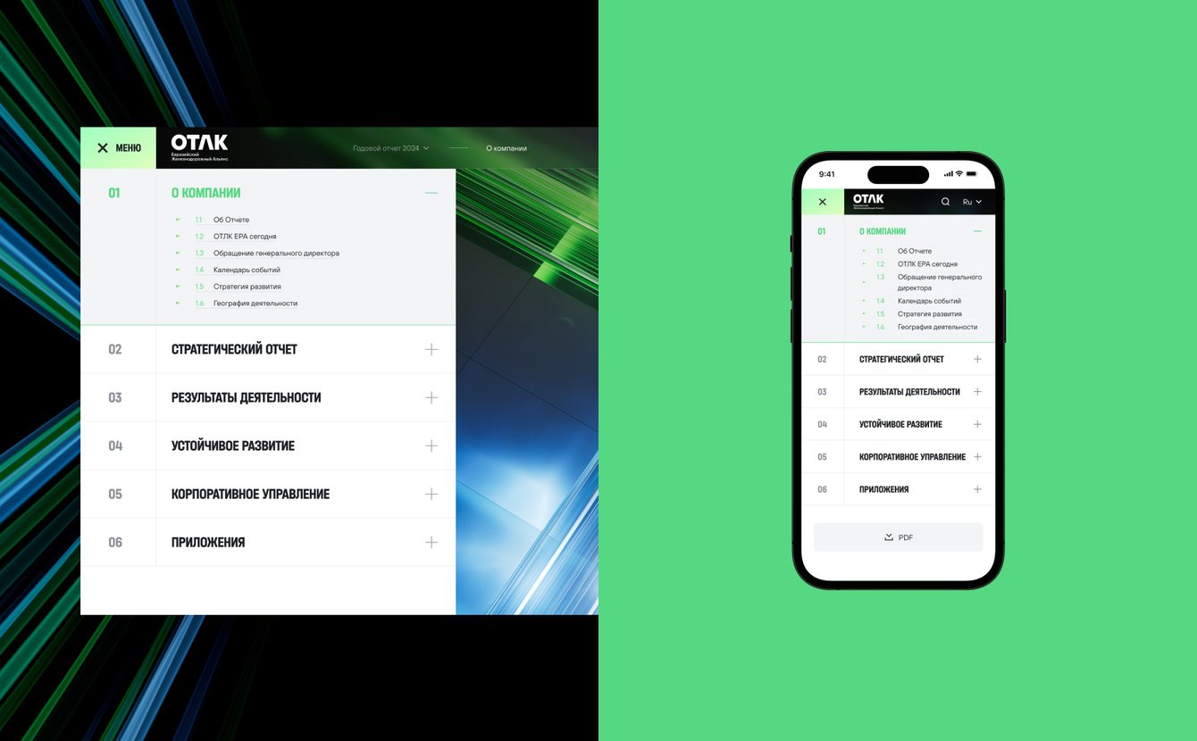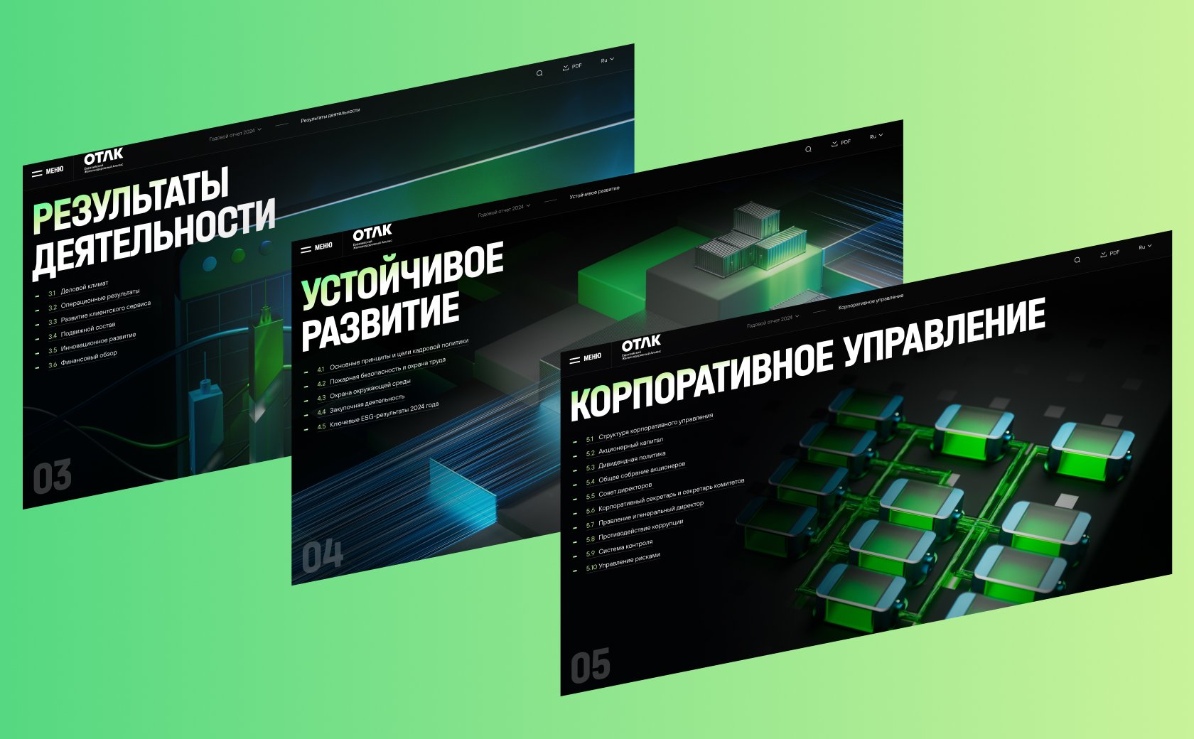 Клиенты и интересанты получили к своему вниманию еще одно визуальное отражение характера и ценностей компании. Да, Отчет немаленький — и именно поэтому очень важно ритмично вовлекать смотрящего в повествование и детали через дизайн. Обратная связь пользователей, проводившаяся коллегами из ОТЛК ЕРА, показала, что выбранный подход сработал — люди не сильно уставали от исследования данных Отчета, что очень важно в контексте годовых отчетов.