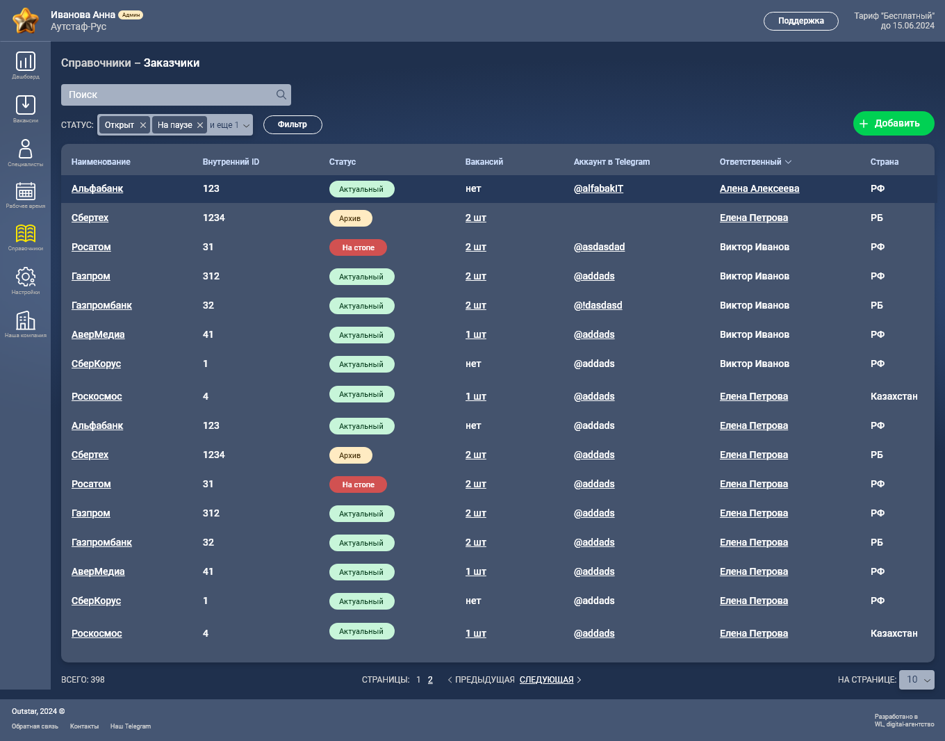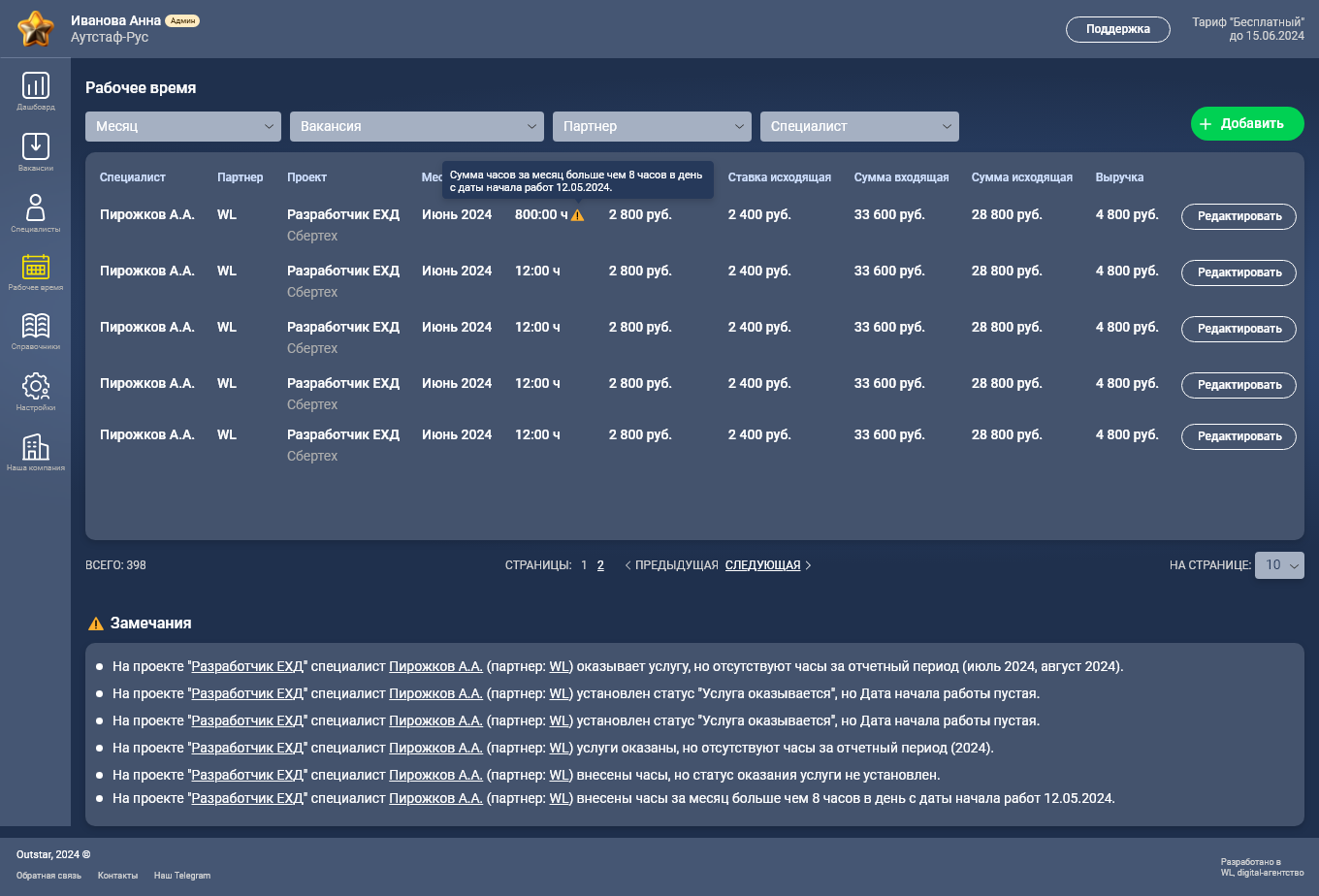 SaaS для управления процессами в outstaff-компании.