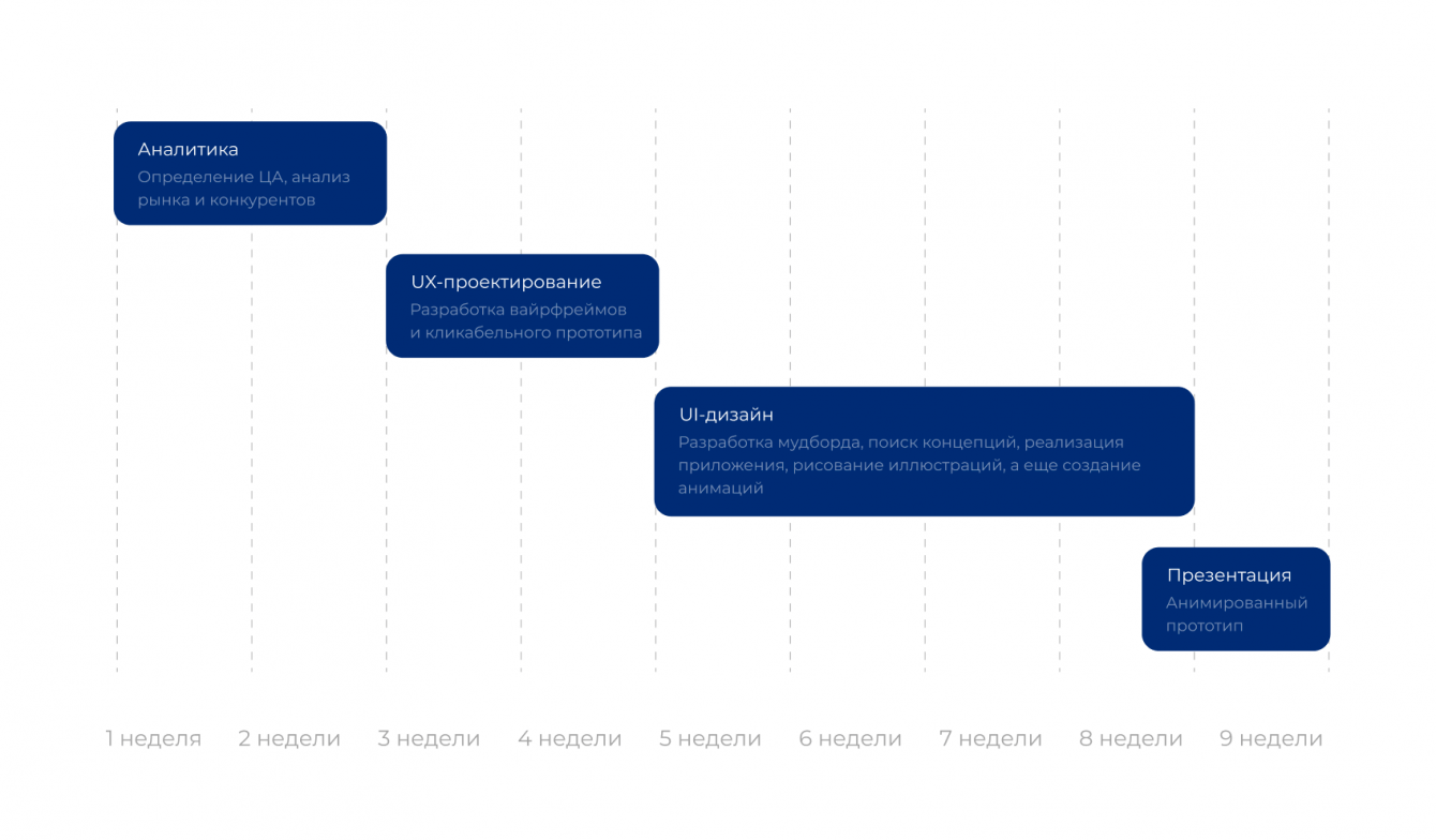 О каждом этапе: целях, работах и результатах — расскажем ниже подробнее.