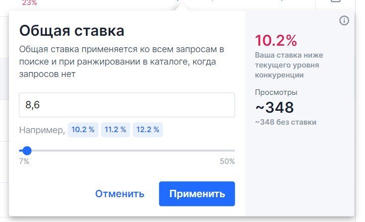 Путем экспериментов выяснили, что занижение актуальной ставки действительно негативно сказывается на уровне продаж. Карточки показываются реже, продажи падают.