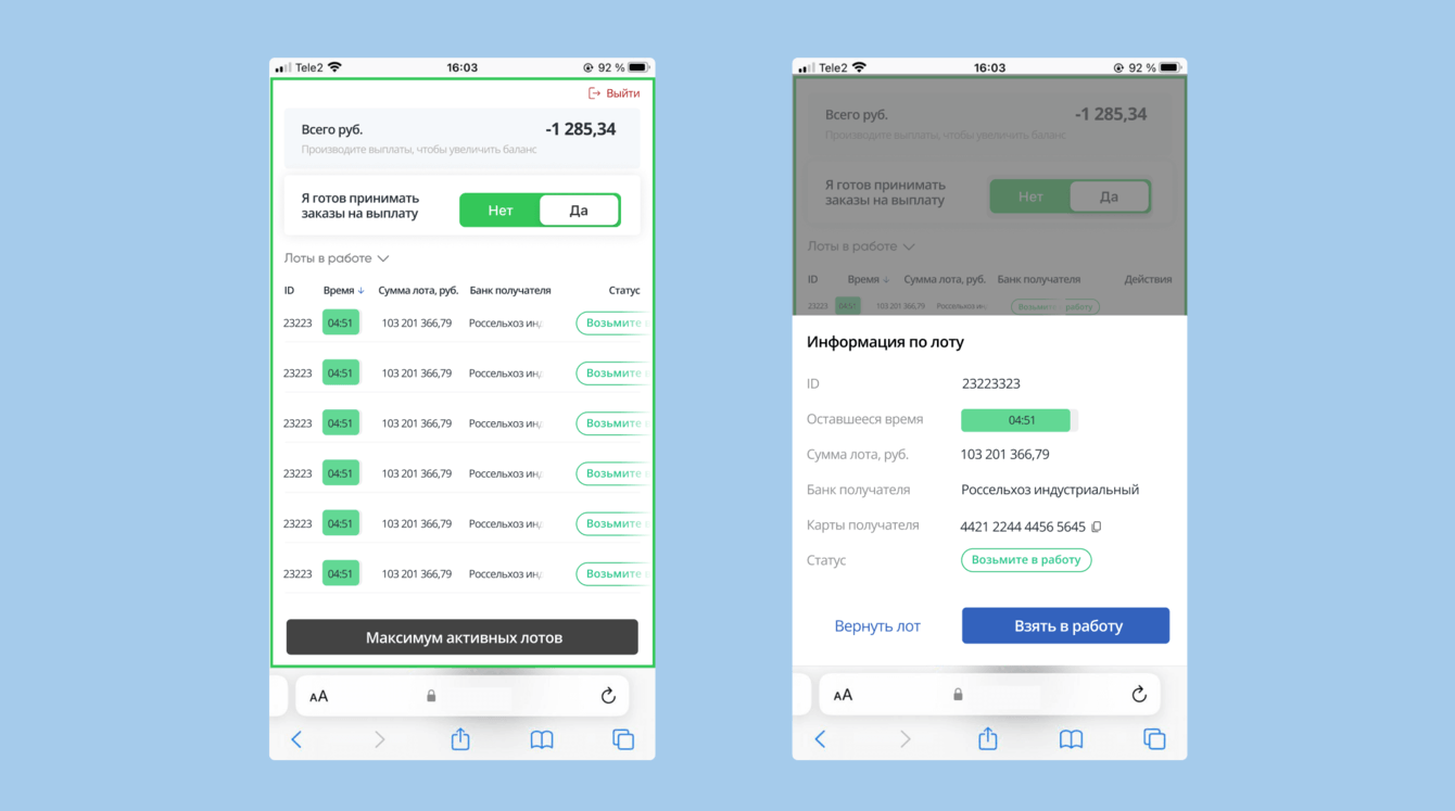 Все действия, связанные с лотами, отображаются в личном кабинете сотрудника поддержки, который может видеть историю всех операций, фильтровать их по различным параметрам и выгружать отчеты в формате XLS для анализа и сверки.Поскольку многим пользователям удобнее работать с сайта через мобильные устройства, мы создали адаптивную версию сайта.
