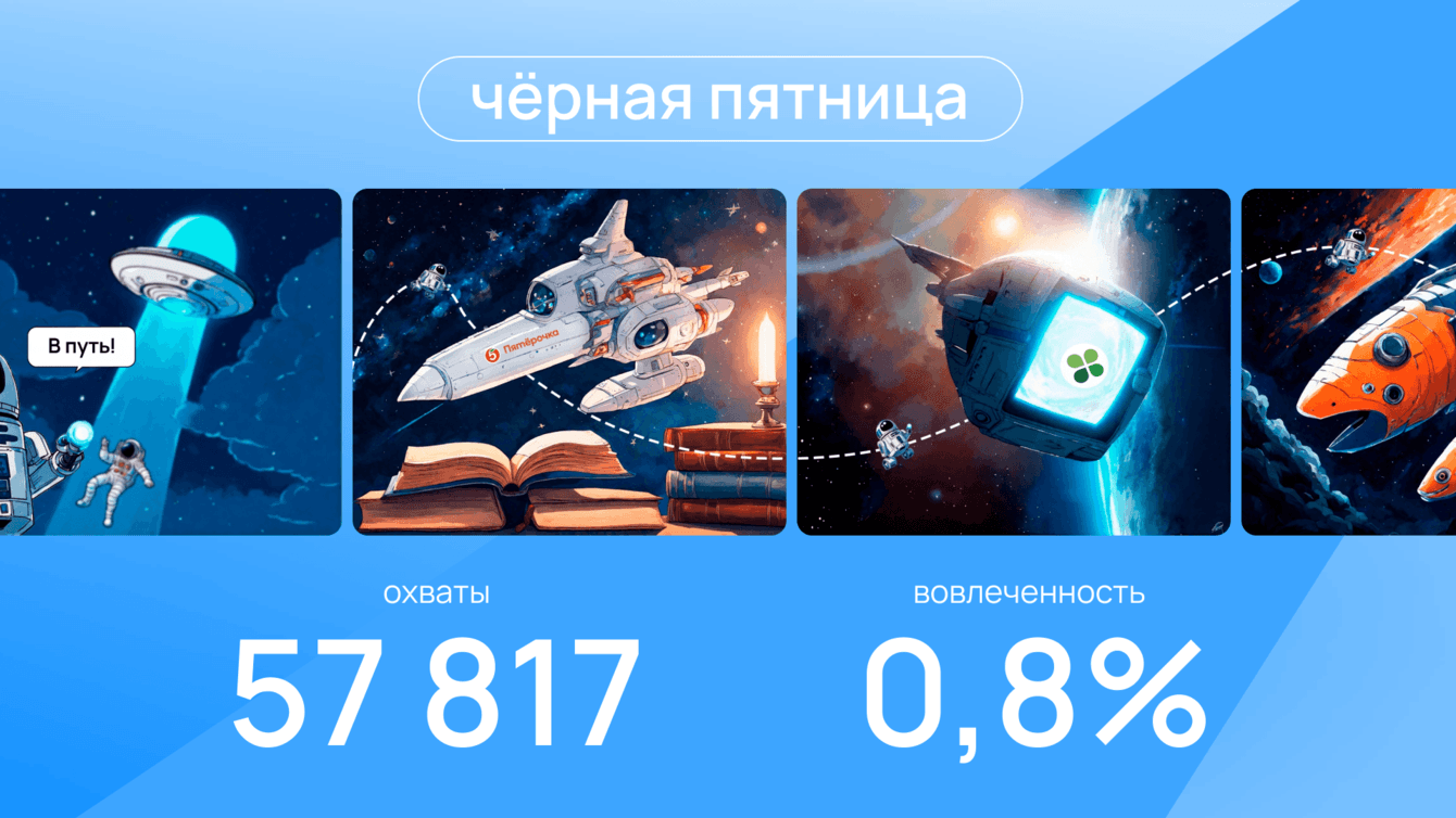 Чтобы решить эту задачу, мы разработали креативный сторителлинг про приключения космонавта Вани. Придумали персонажа, разработали визуальную стилистику и написали драйвовую историю, которая объединила все посты в поддержку акции. В работе использовали нейросети, иллюстрации и анимированные геймификации.