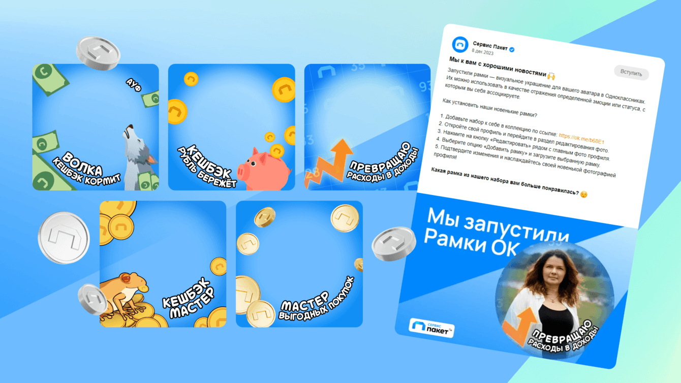 Одной из идей стал формат брендированных рамок в Одноклассниках, которыми пользователи могут украсить свои аватары. При их установке человек автоматически подписывается на сообщество.