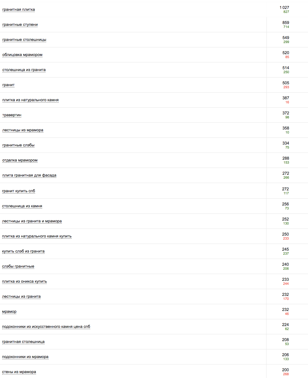Мы подбирали запросы так, чтобы привлечь на сайт целевую аудиторию, исключив пустые посещения.