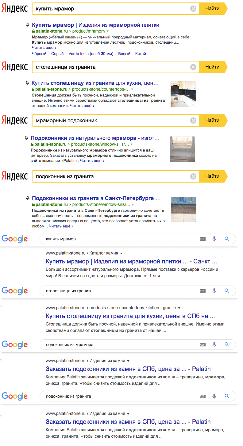 Перед нами стояла задача вывести запросы на первые места не только в Яндексе, но в Google.