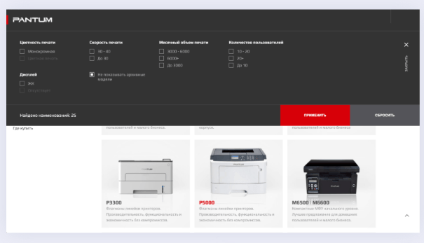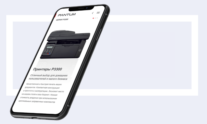 Разработать удобный и понятный сайт устройств Pantum для рынка РФ. Помочь пользователю через сайт сформировать доверие к бренду.