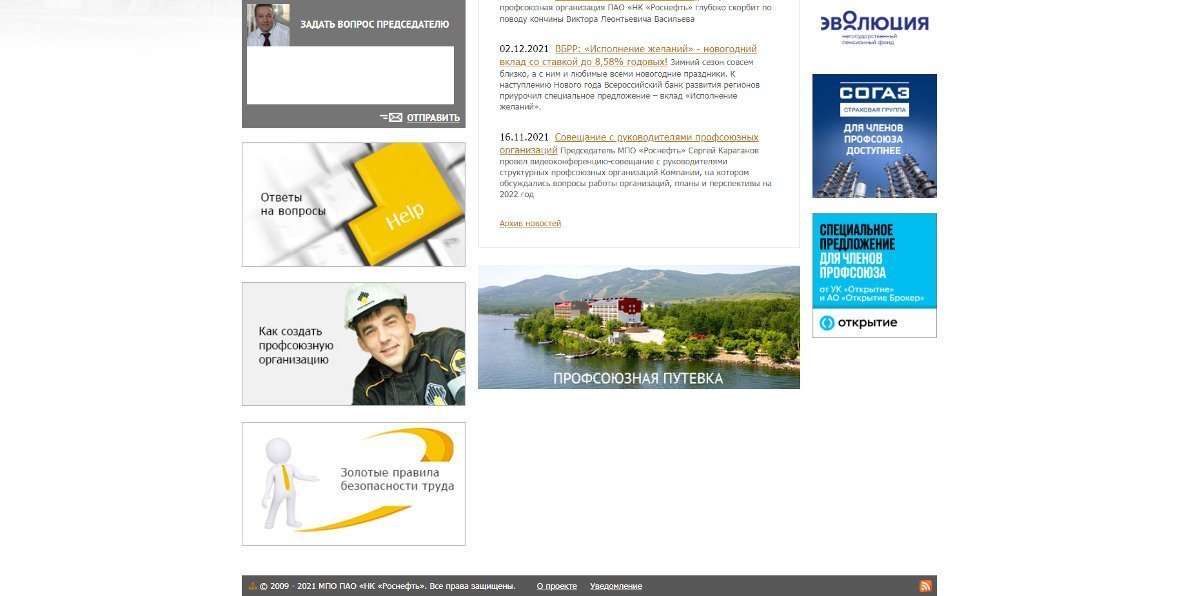 Техническая поддержка веб-проекта сайта МПО Роснефть