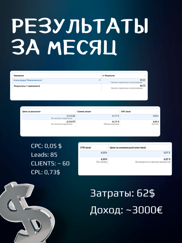 Изучил рынок и благодаря правильно подобранным креативам мы выстроили поток из клиентов.