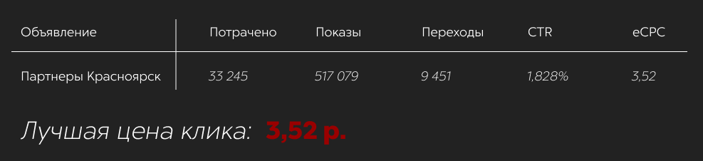Всего за 4 месяца работы с Яндекс.Директа мы получили почти 3000 заявок со средней ценой 47 рублей.
