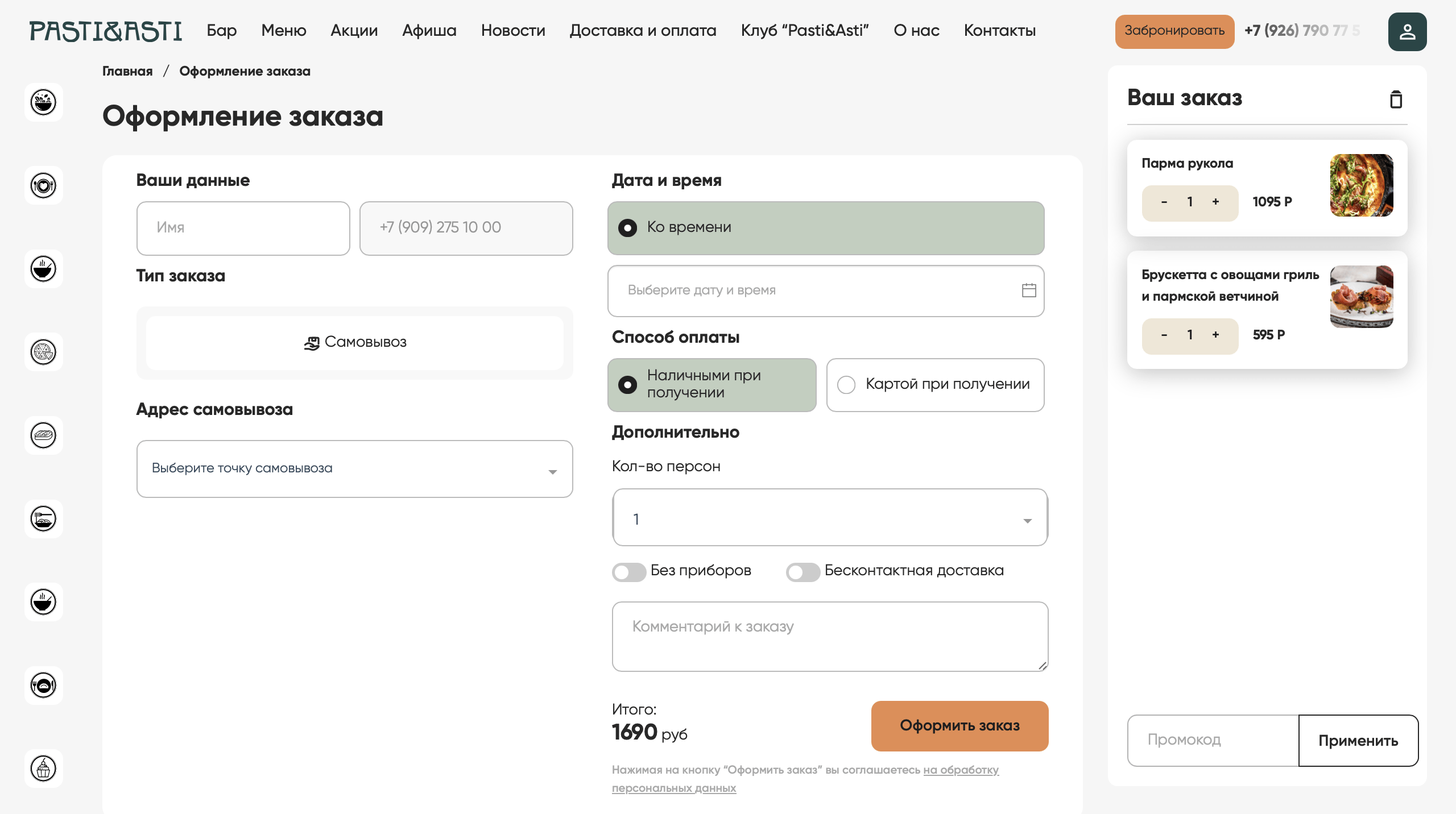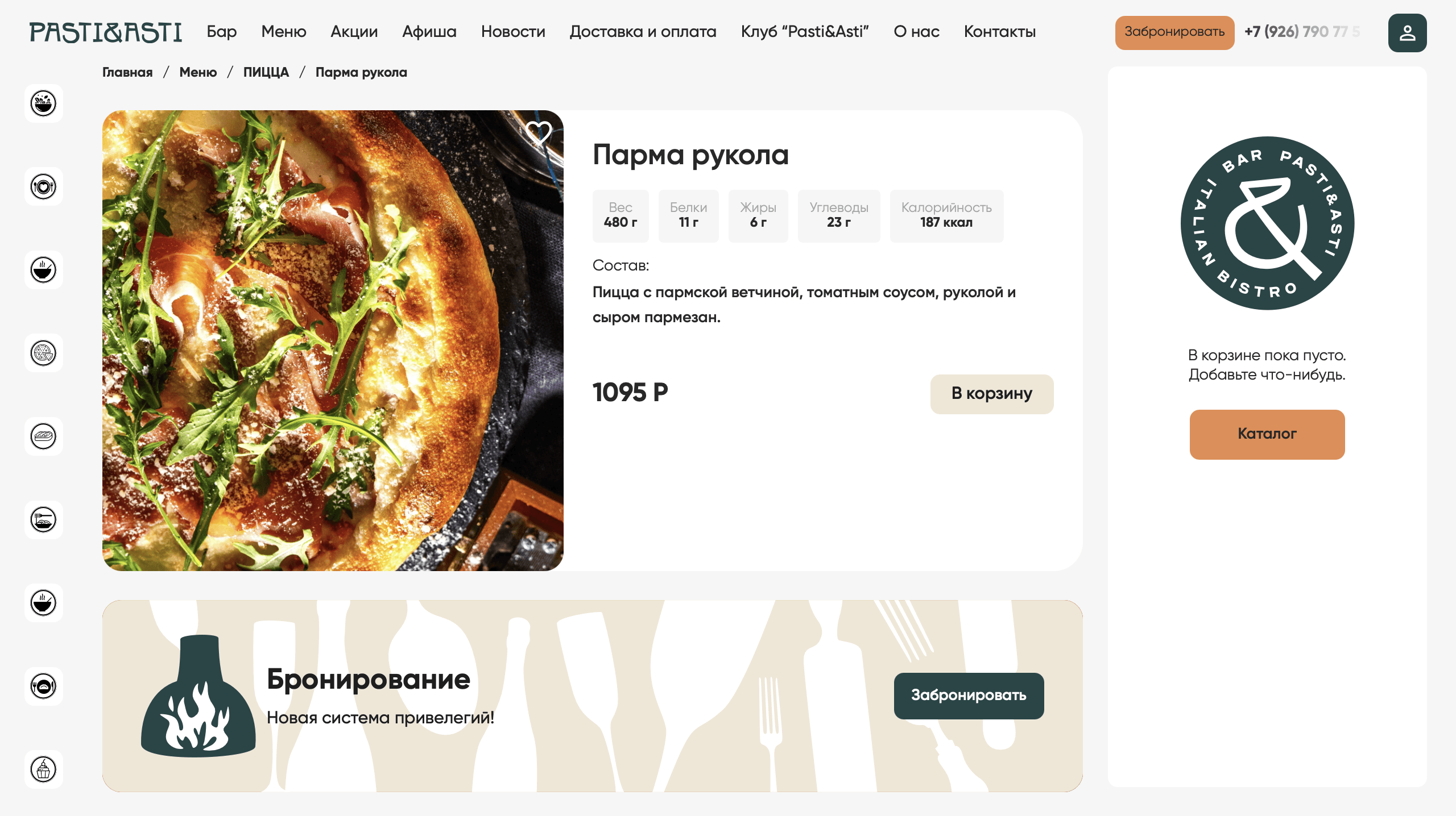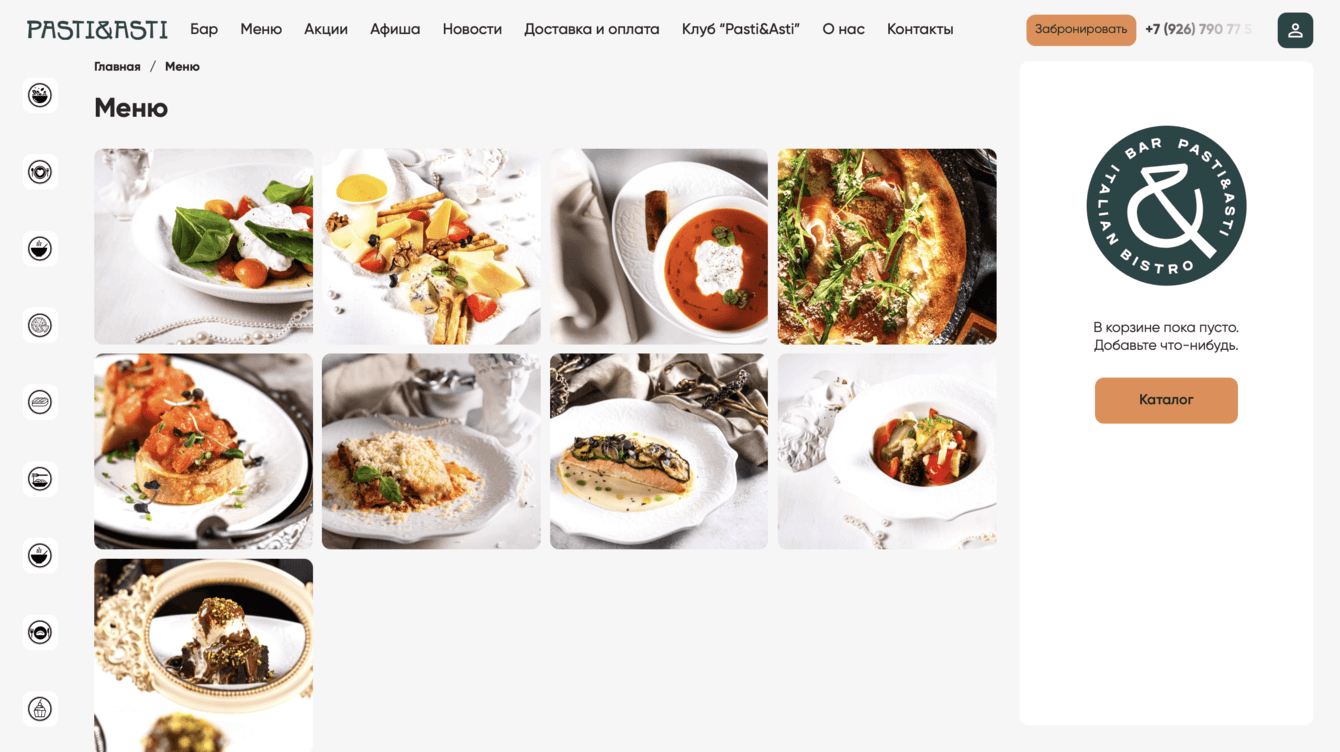 На стороне нашей команды была поставлена задача реализовать web-сайт, который знакомил бы пользователя со всеми ценностями бренда в ресторанной среде, а так же создать действенный инструмент для повышения конверсии брониярования столов и удобного оформления доставки еды.
