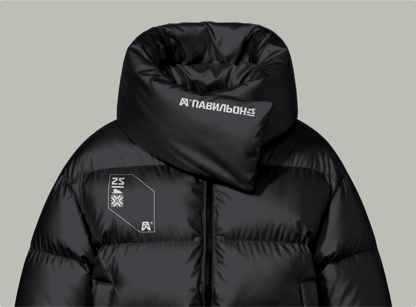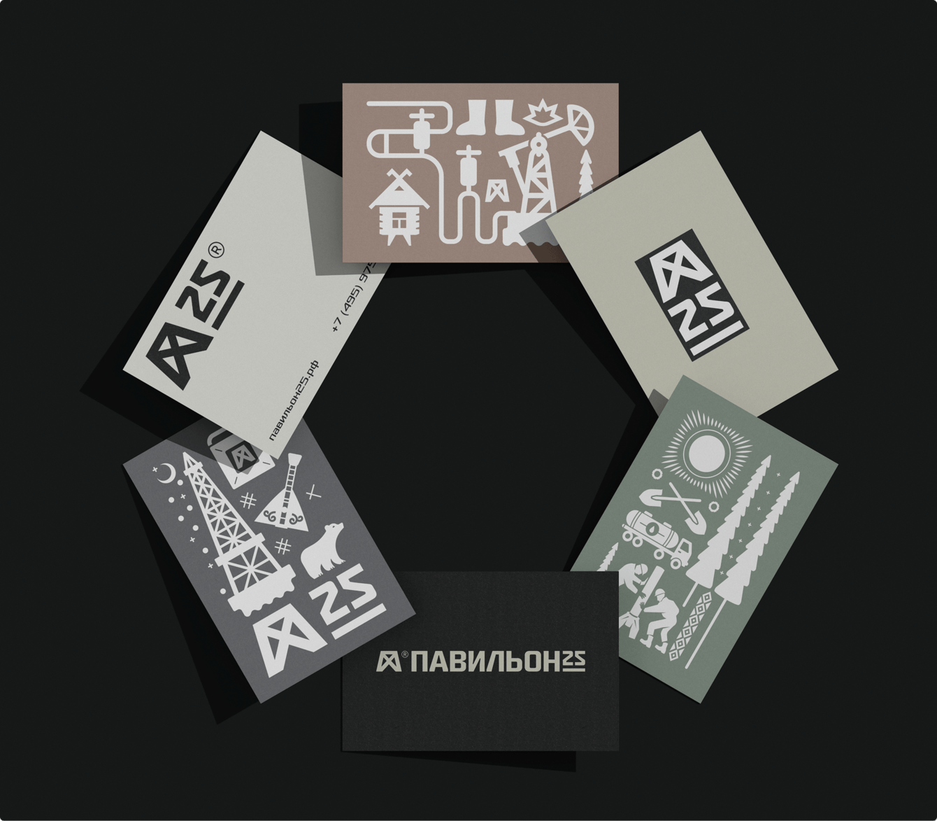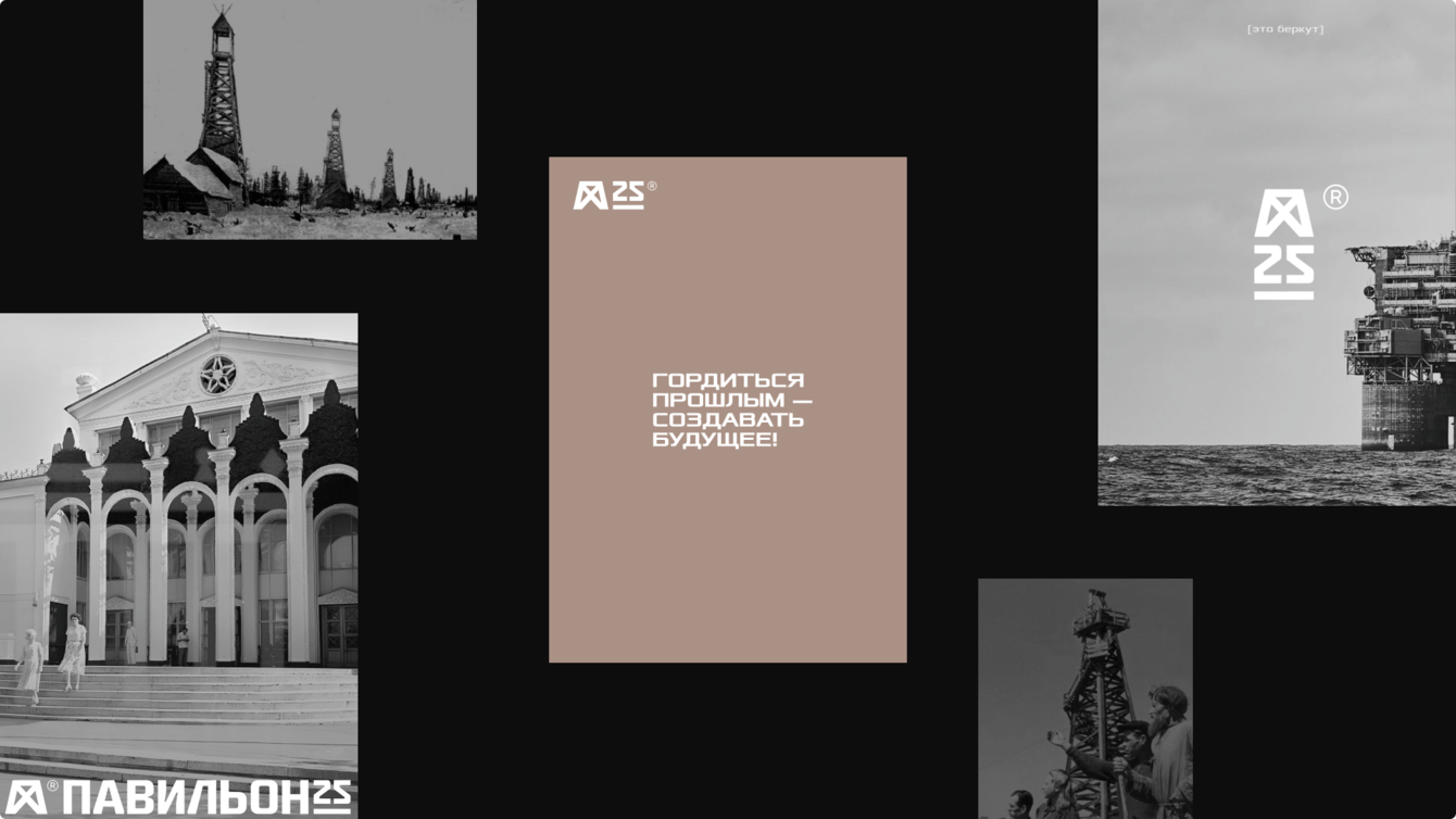 Справа от символа находится текстовая часть «Павильон 25», дублирующая название. Число «25» подчёркнуто — это придаёт логотипу еще более технологичный вид.