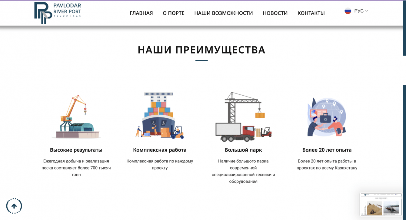 Задача: Создать веб-платформу для АО "Павлодарский речной порт", отражающую его многоцелевые технологические возможности в перевалке и перевозке разнообразных грузов в годовом объеме до 6,5 миллионов тонн. Сайт должен предоставлять подробную информацию о порте, его инфраструктуре, технических возможностях и опыте работы. Учитывая опыт компании в различных проектах, включая расчистку, дноуглубление и берегоукрепительные работы, а также реконструкцию канализационно-очистных сооружений, необходимо включить соответствующий раздел на сайт. Веб-платформа должна быть разработана с использованием HTML, CSS, PHP и интегрированной платформы OctoberCMS для удобного управления содержимым. Главная цель - представить порт как надежного и опытного партнера, способного удовлетворить потребности клиентов и привлечь новых партнеров и инвесторов.
