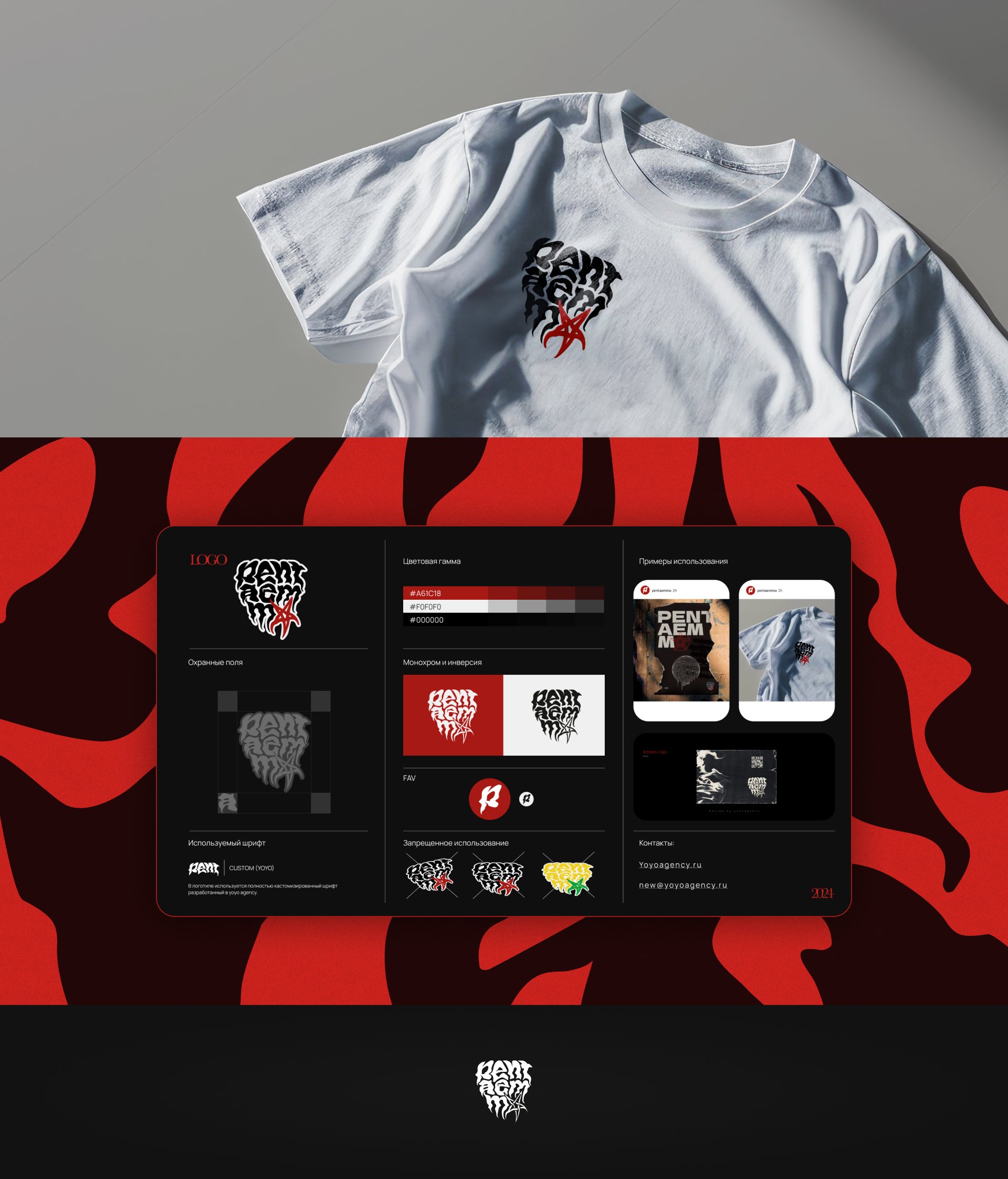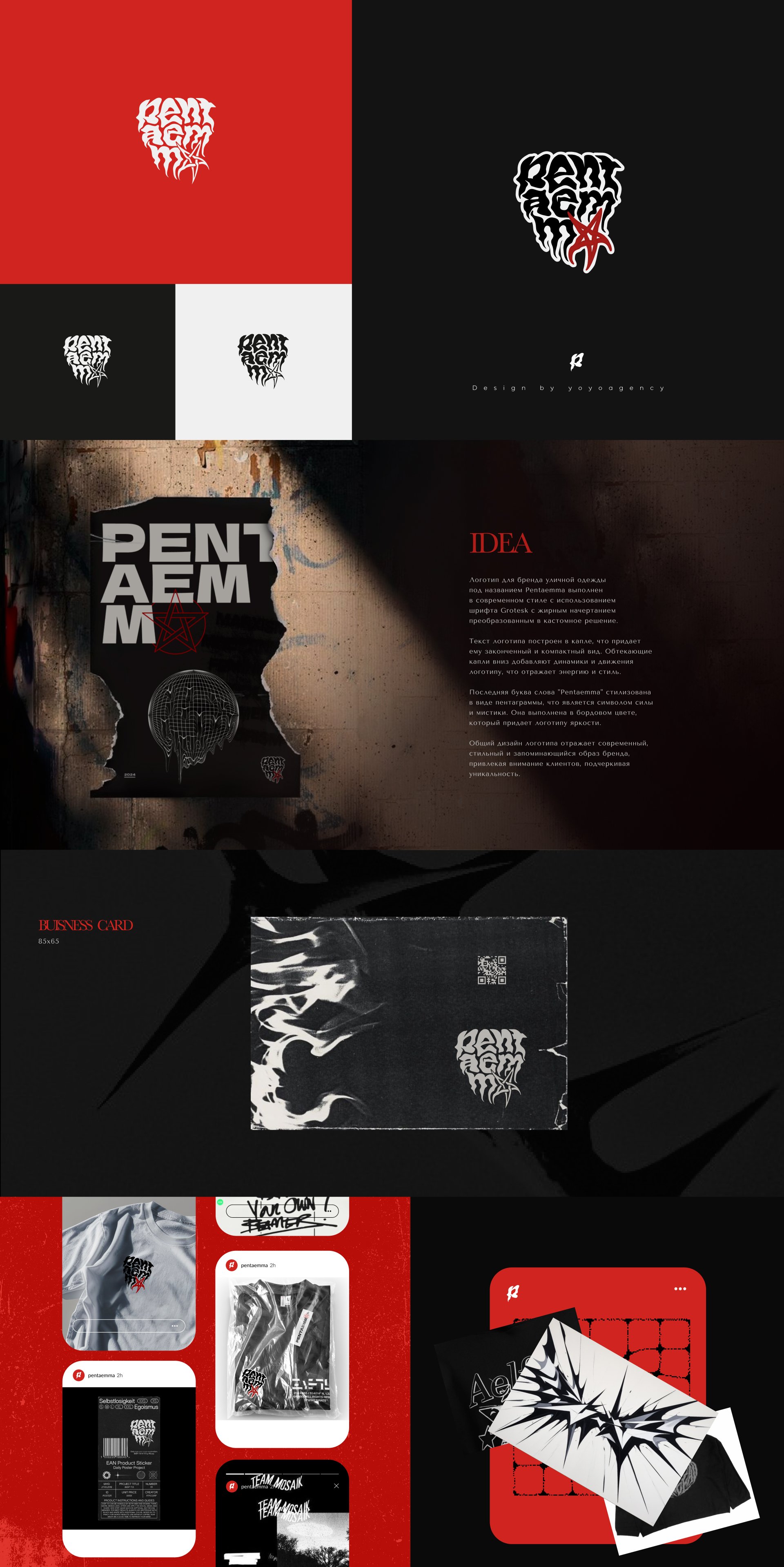 Логотип для бренда уличной одежды под названием Pentaemma выполнен в современном стиле с использованием шрифта Grotesk с жирным начертанием преобразованным в кастомное решение.