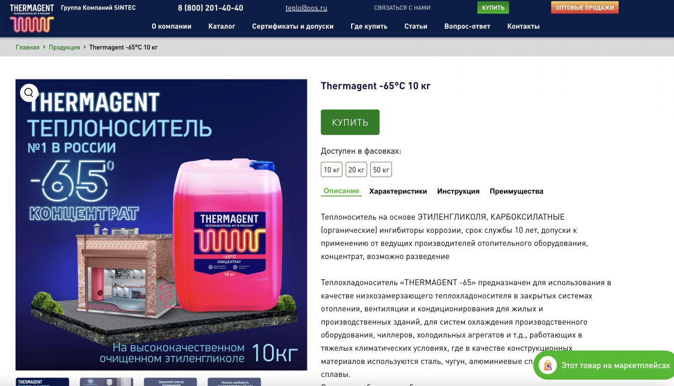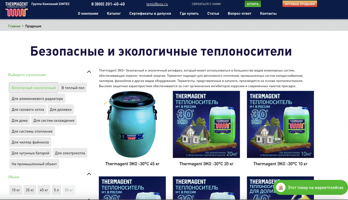 К нам обратился клиент, который занимается продажей теплоносителей для систем отопления под брендом «Thermagent». Основные проблемы, которые волновали клиента – это медленная скорость загрузки страниц и постоянные проблемы со взломами сайта. Сайт был написан на CMS WordPress. В итоге, после обсуждения, решили вместе с клиентом перенести сайт на другую, более подходящую для его задач CMS, а именно – Битрикс.