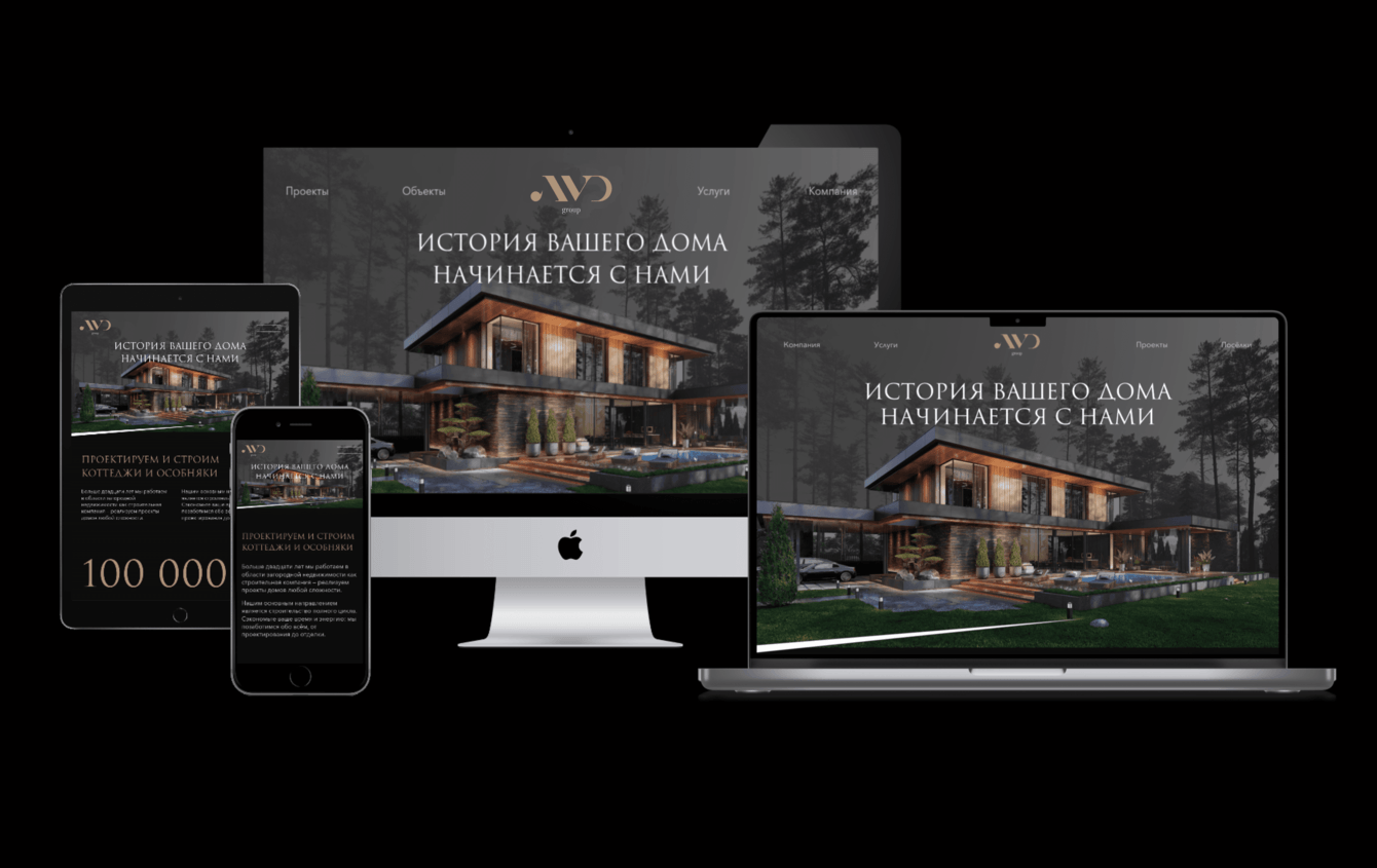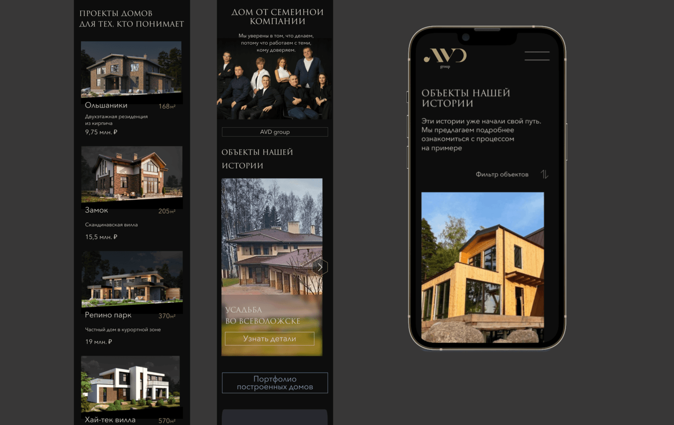 На этапе дизайна сформулировали концепцию сайта с учетом нового позиционирования компании AVD Group, как премиального застройщика элитной недвижимости. Определили новое оформление и нэйминг для презентации проектов. Сформулировали основной посыл для заголовков и слоганов на базе семейных ценностей и особенностей авторских проектов.