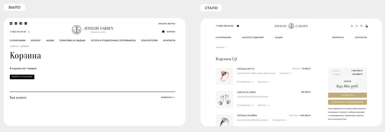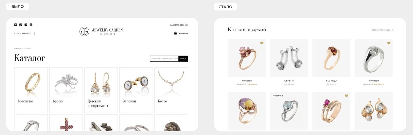Ключевая задача — сделать площадку Jewerly Garden более актуальной, лаконичной и удобной как для покупателей, так и для администрирования командой клиента.