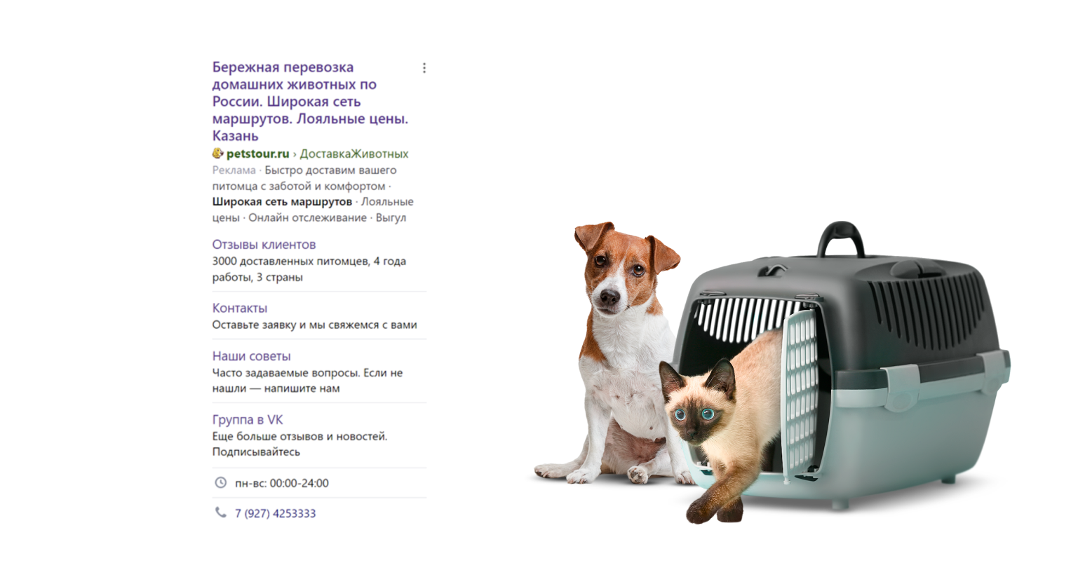 Конкуренты PetsTour активно рекламируются на поиске. Мы изучили их и нашли общую проблему — активные призывы позвонить и минимум полезной информации.