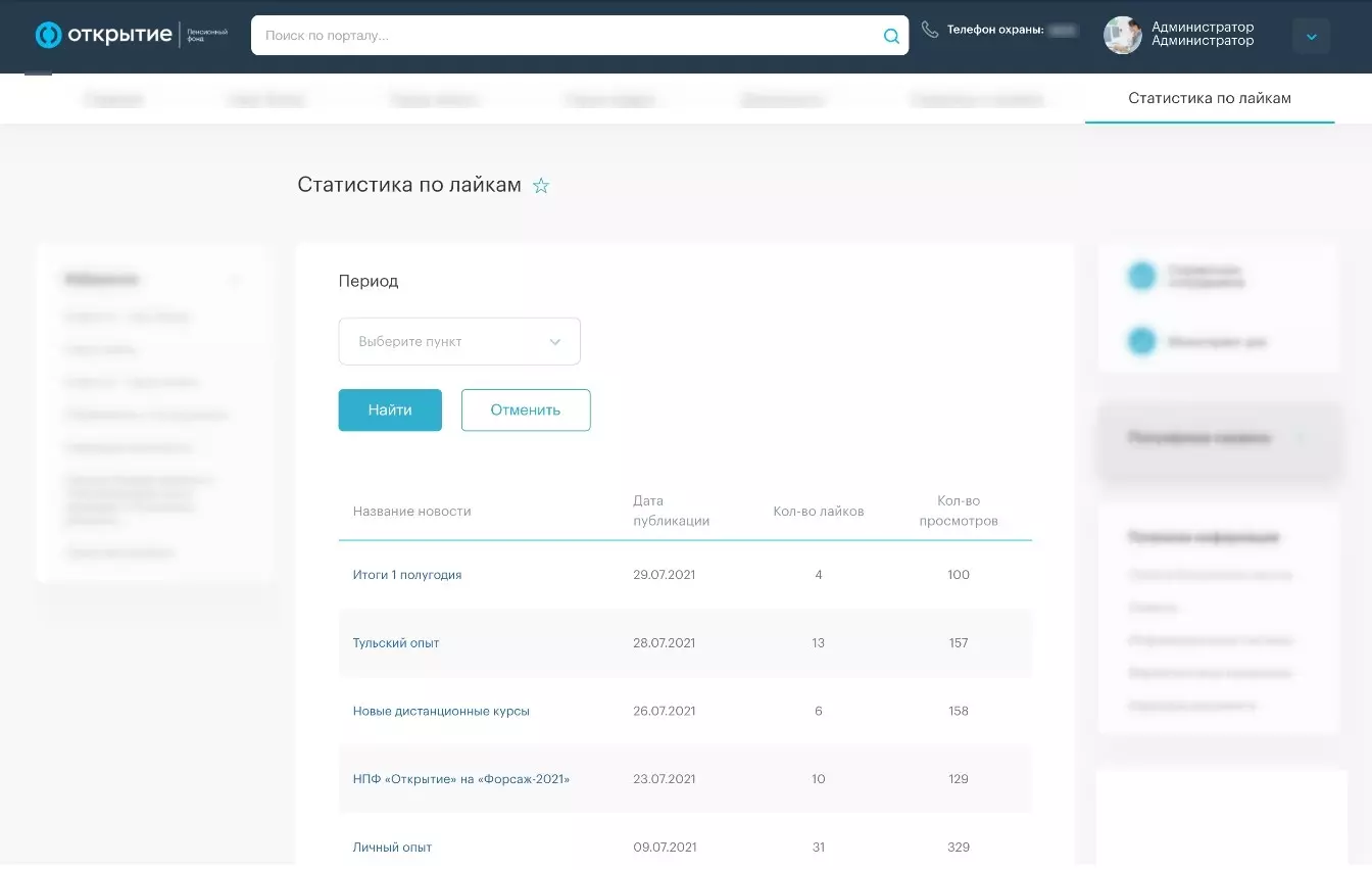 Также мы установили сбор статистики по лайкам и просмотрам, чтобы контент-менеджер мог отслеживать динамику просмотров и выделять наиболее волнующие сотрудников темы.