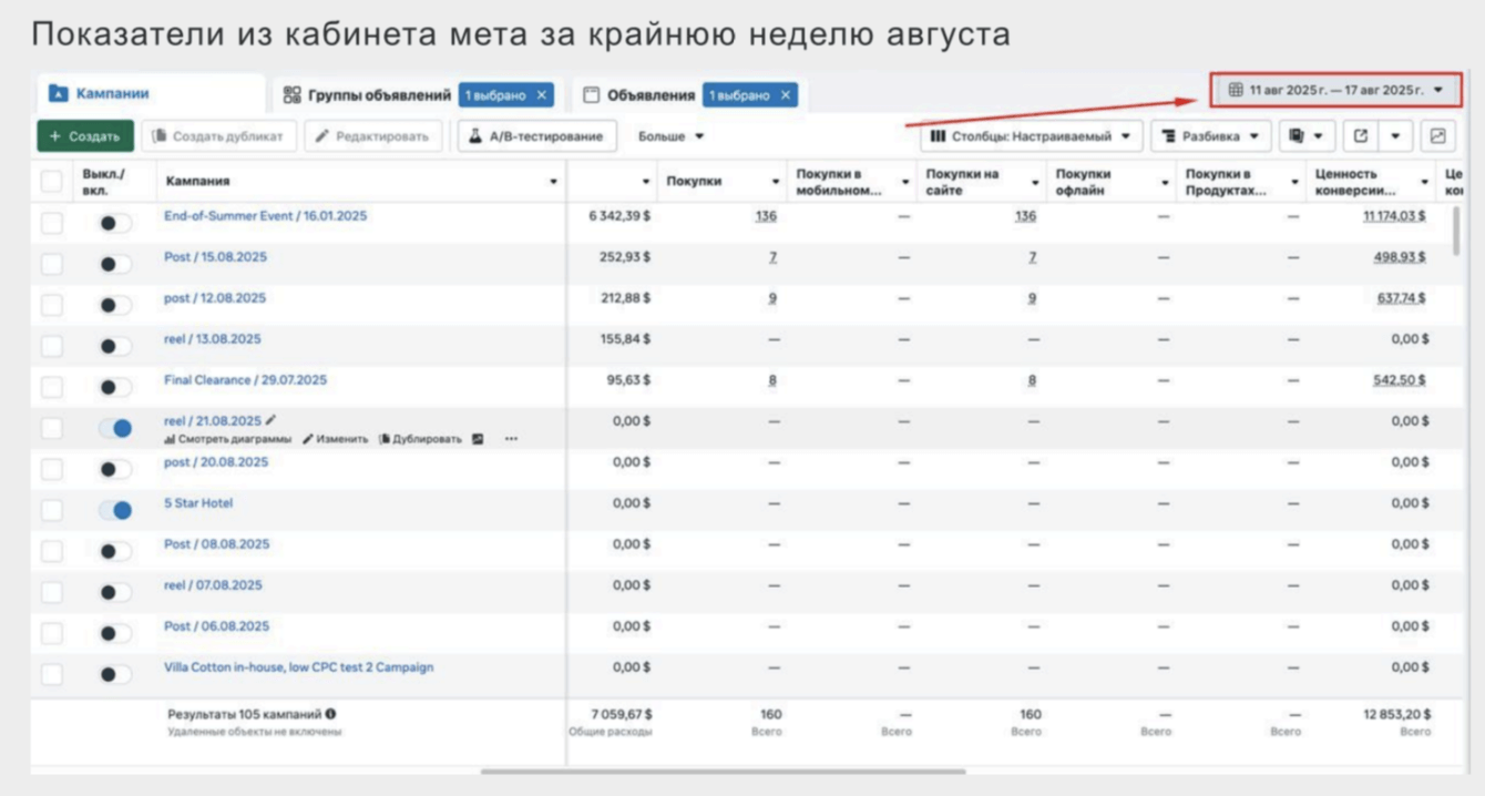 Villa Cotton яркий пример того, как правильно выстроенный цикл из акций, performance-маркетинга, CRM и SEO позволяет: прекратить убыточные каналы снизить DRR увеличить продажи удерживать результат на стабильном уровне.