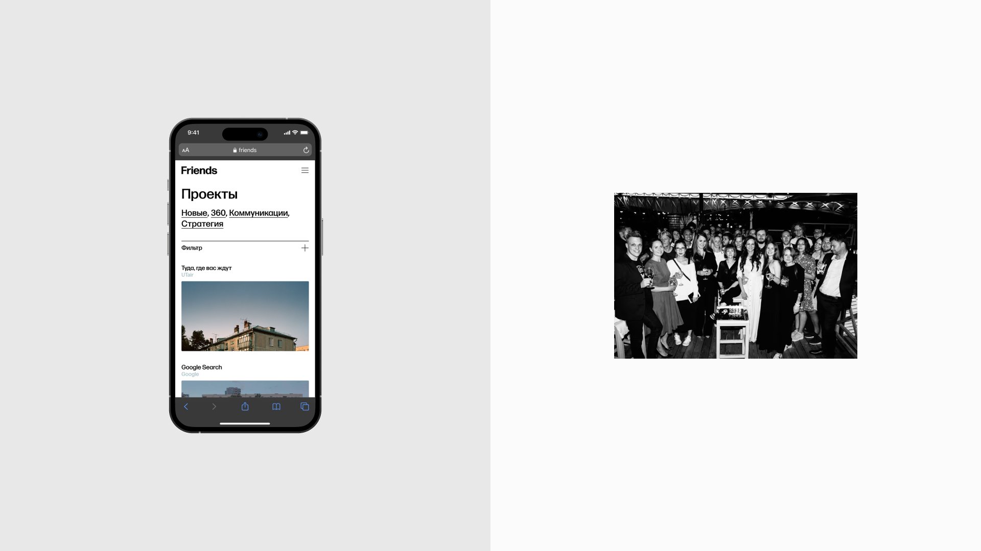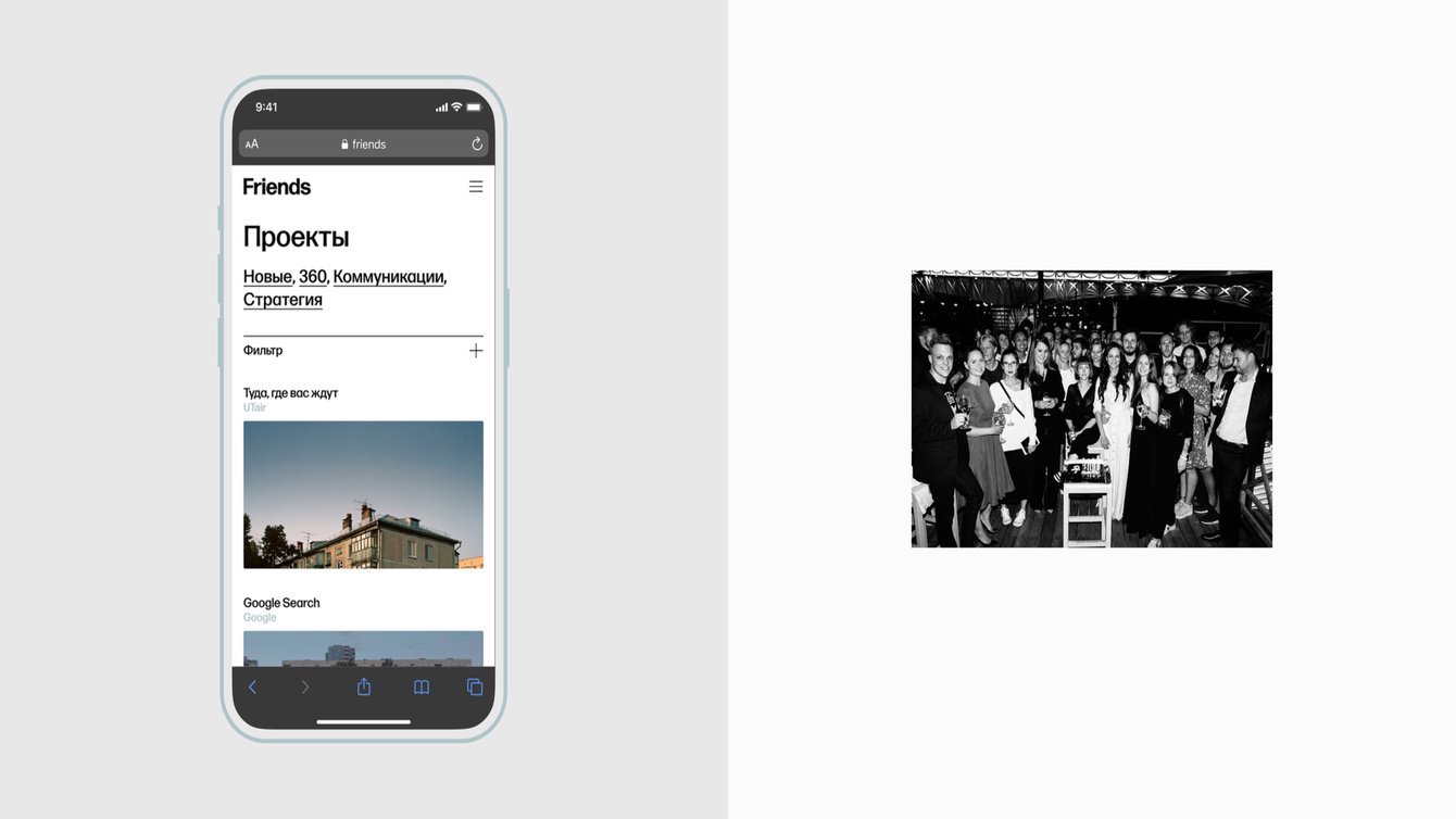 Агентство Friends прошло визуальное обновление — фирменный стиль обновился в соцсетях и графических материалах, а сайт остался прежним и уже не отражал духа бренда. Он визуально и функционально отставал от текущего позиционирования компании, что особенно критично для агентства, работающего в сфере рекламы и креатива.