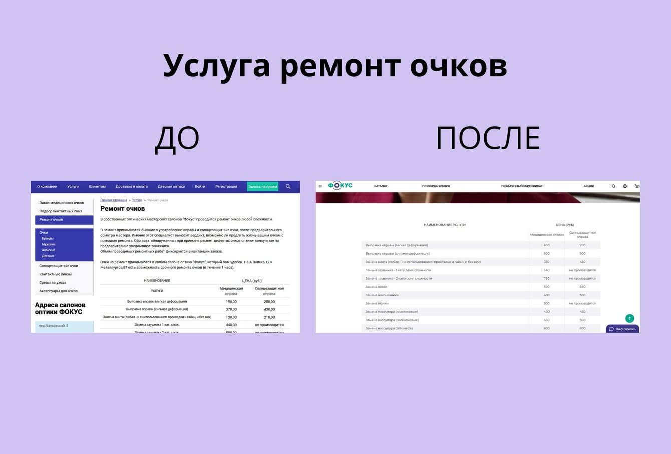 Клиент: Сеть салонов оптики "Фокус"