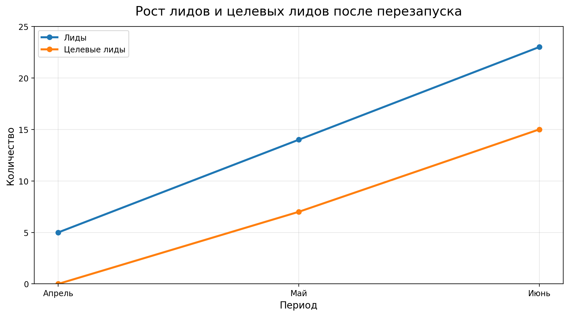 За период апрель–июнь 2025 года проект прошел путь от остановки рекламы и полной переработки рекламной логики до стабильного роста качественных обращений.