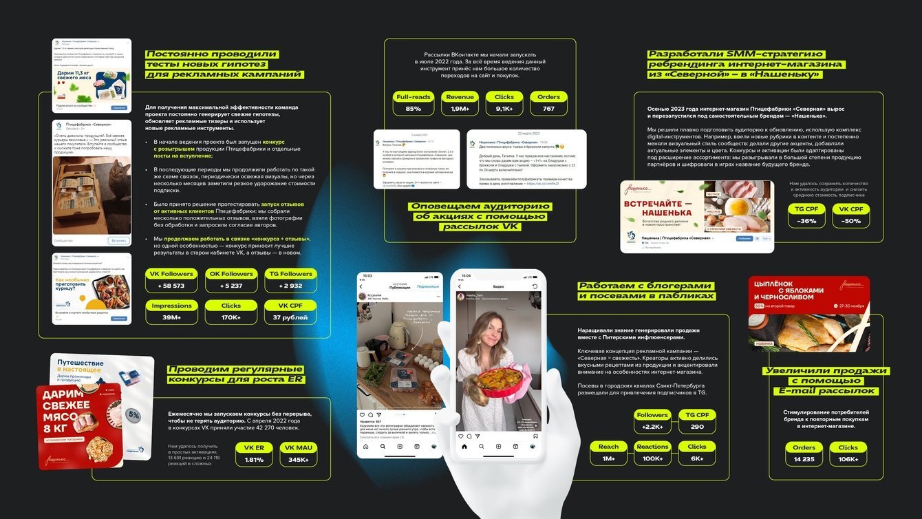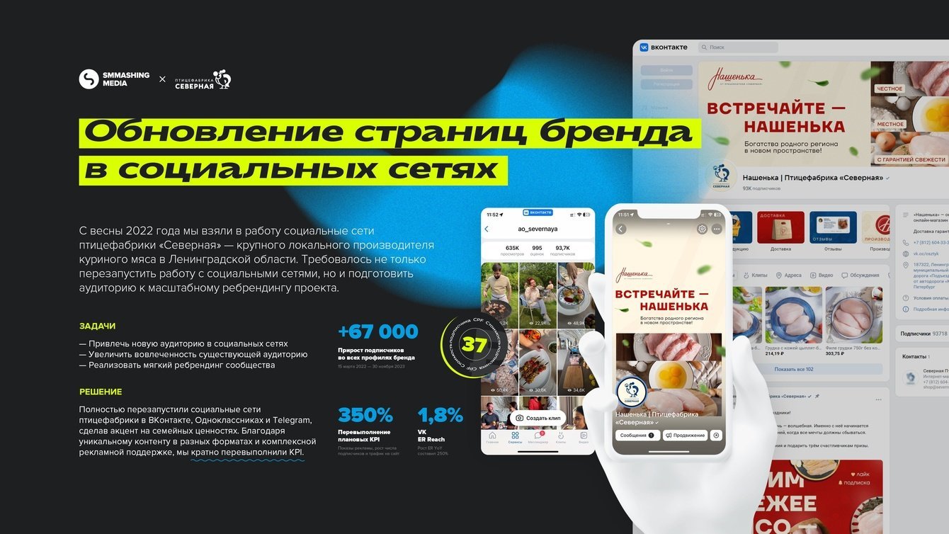 За время ведения проекта нам удалось перезапустить работу социальных сетей бренда и выстроить новую эффективную систему взаимодействия бренда Птицефабрика «Северная» с пользователями.