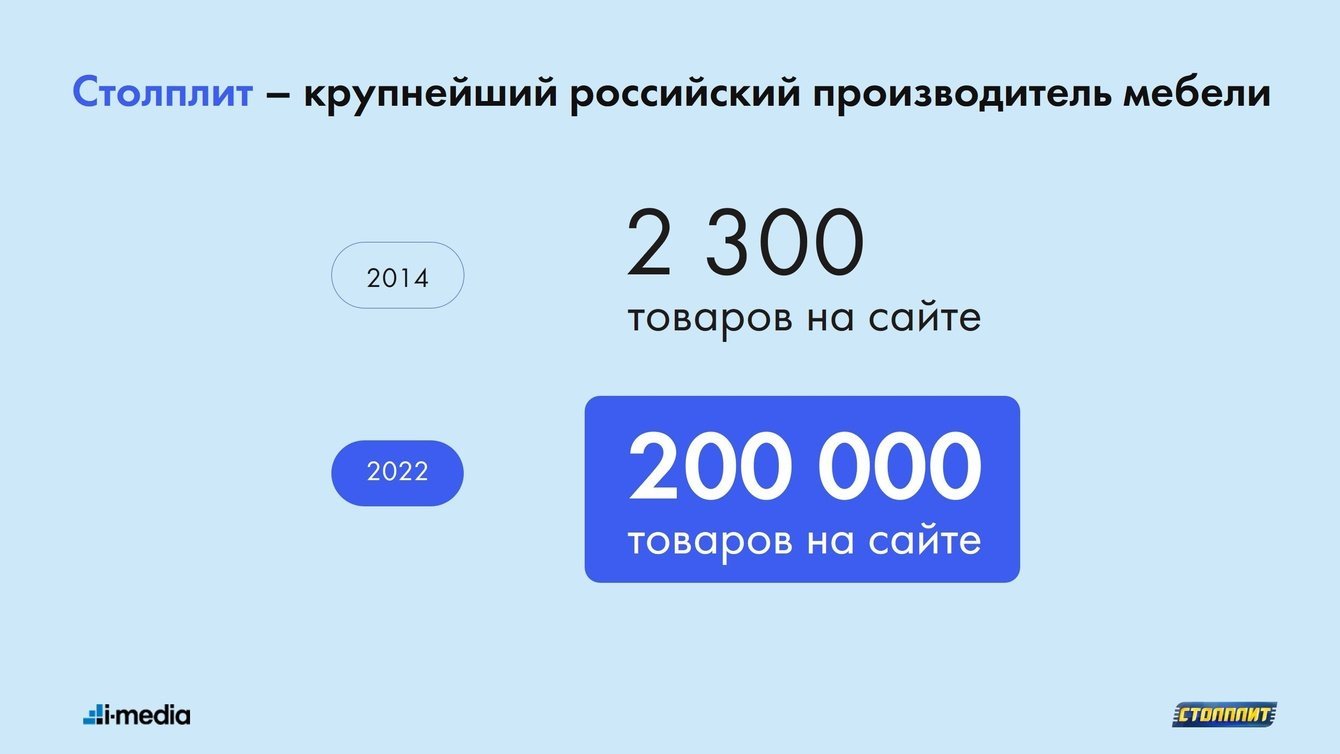 «Столплит» — крупнейший российский производитель мебели, который имеет более 200 000 товаров на сайте.