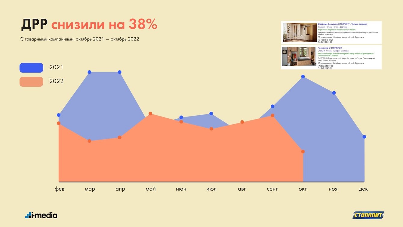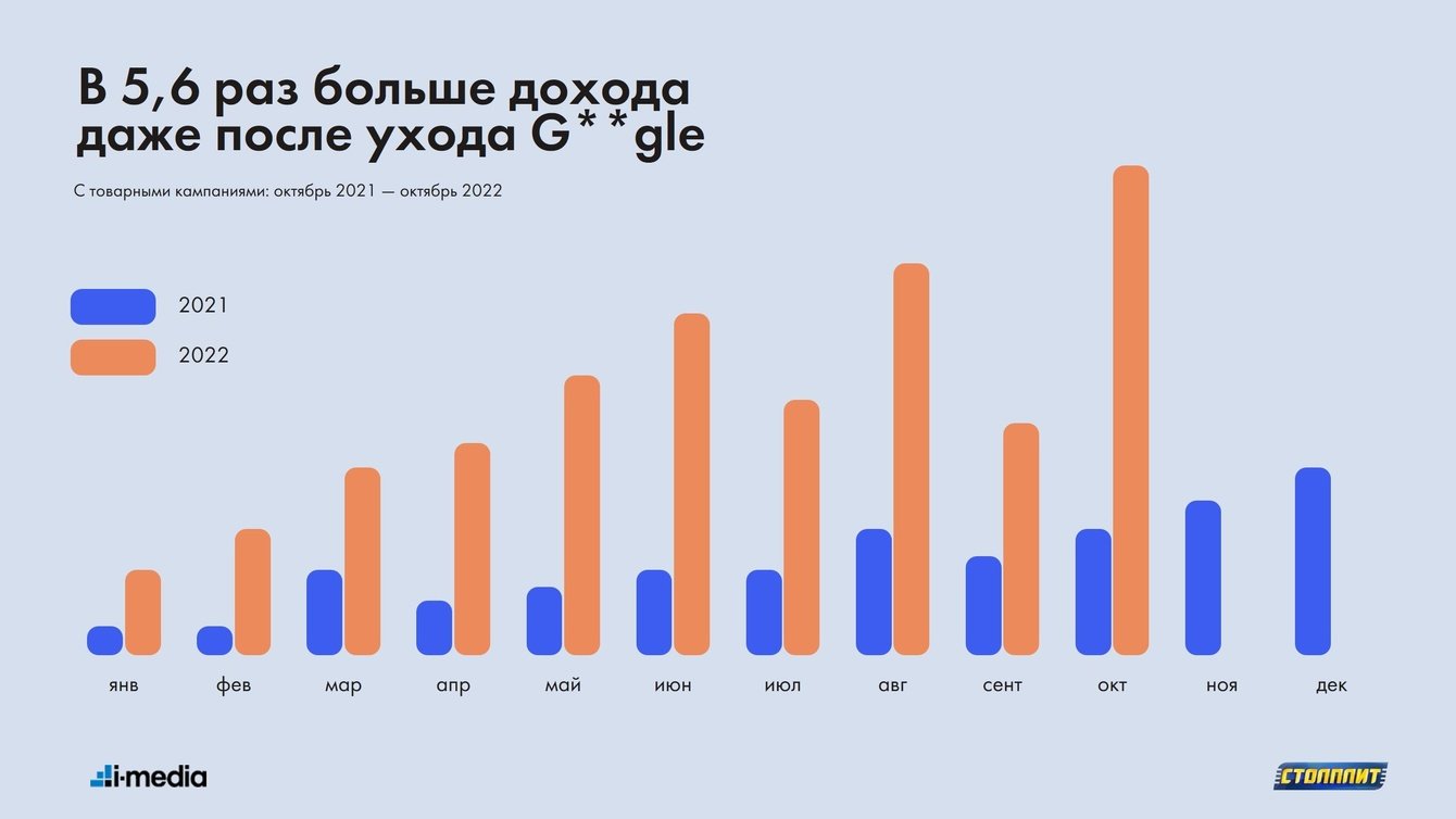 До февраля 2022 основной объем кампаний был в Google. Мы держали высокий уровень ROI. Поэтому после ухода площадки стояла задача не просесть в заказах, сохранив ROI.