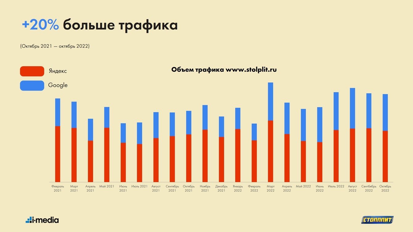 На старте поисковой оптимизации интернет-магазина «Столплит» у нас в работе было 40+ регионов и 10 000 запросов.