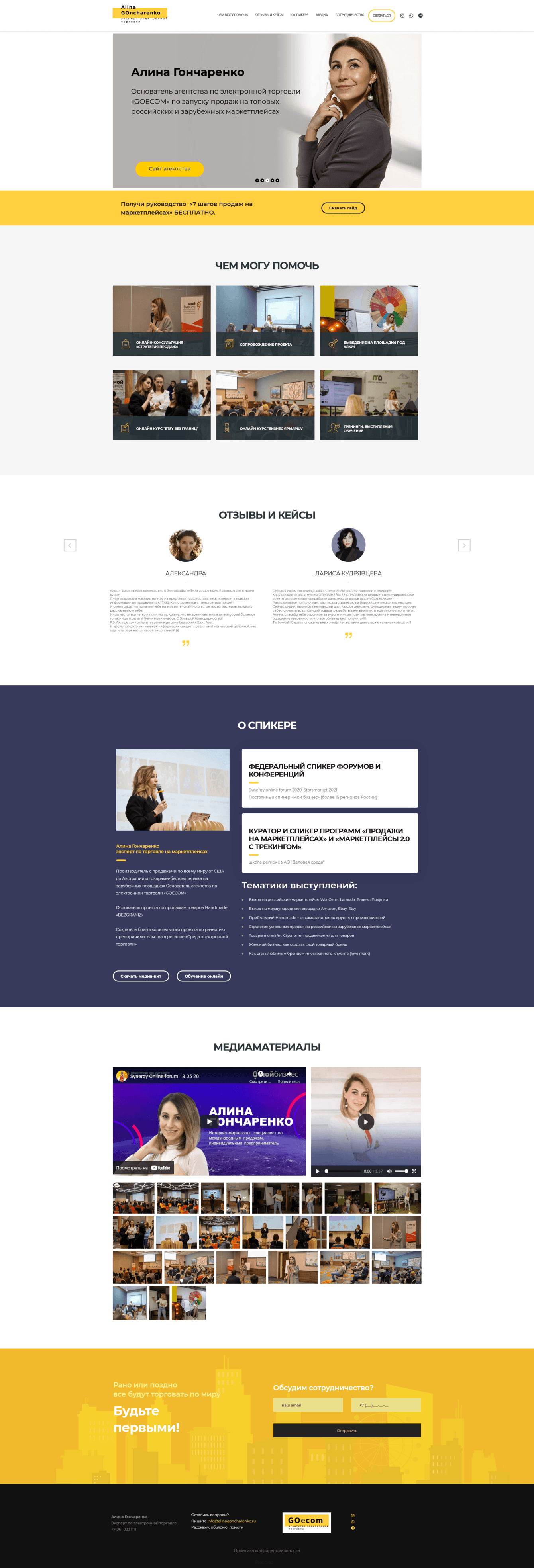 Разработать персональный сайт бизнес-спикера Алины Гончаренко