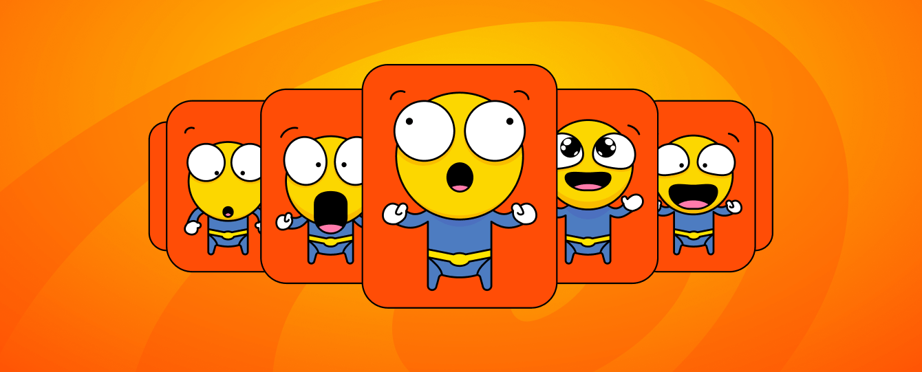 Главный герой был создан после тщательного изучения нескольких референсов и примеров, чтобы избежать повторений в дизайне. На раннем этапе разработки нам задали вектор «эмоций», поэтому мы вдохновлялись значками emoji. Однако в дальнейшем этот вектор изменился.