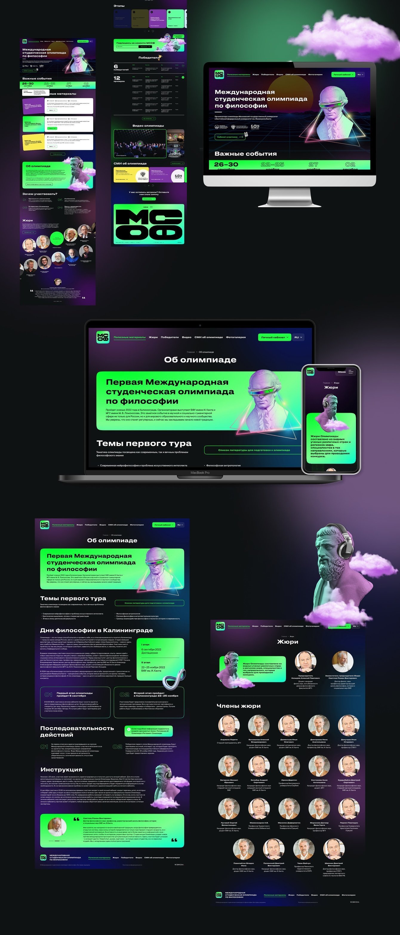2) информацию об организаторах олимпиады — Минобрнаука, БФУ и МГУ со ссылками на их сайты;