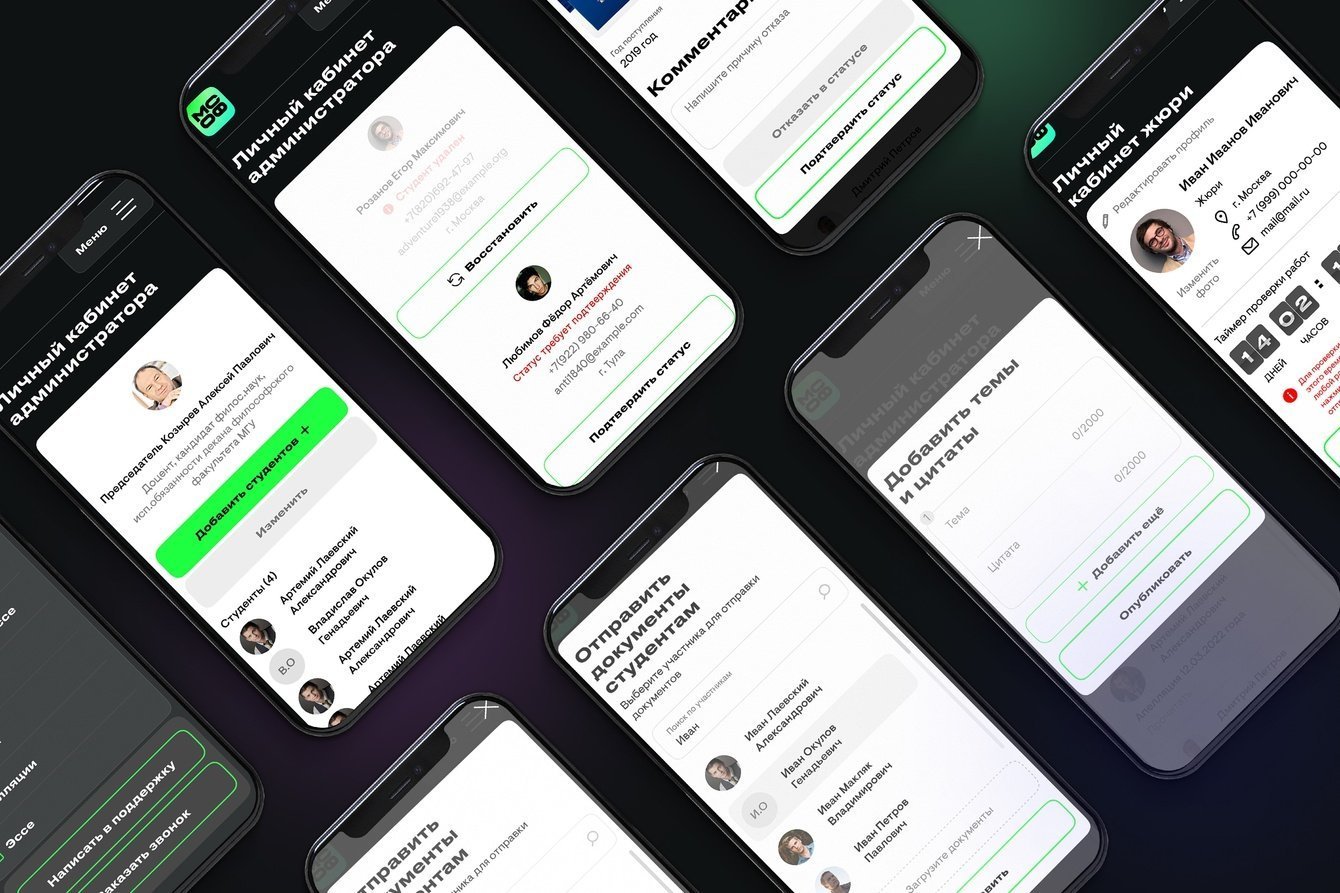 5) личный кабинет участника. Функционал ЛК участника подразумевал возможность регистрации на олимпиаду и проверку администратором олимпиады прикрепленных документов, а затем выставление статуса «Студент». После присвоения статуса открывался весь функционал кабинета: