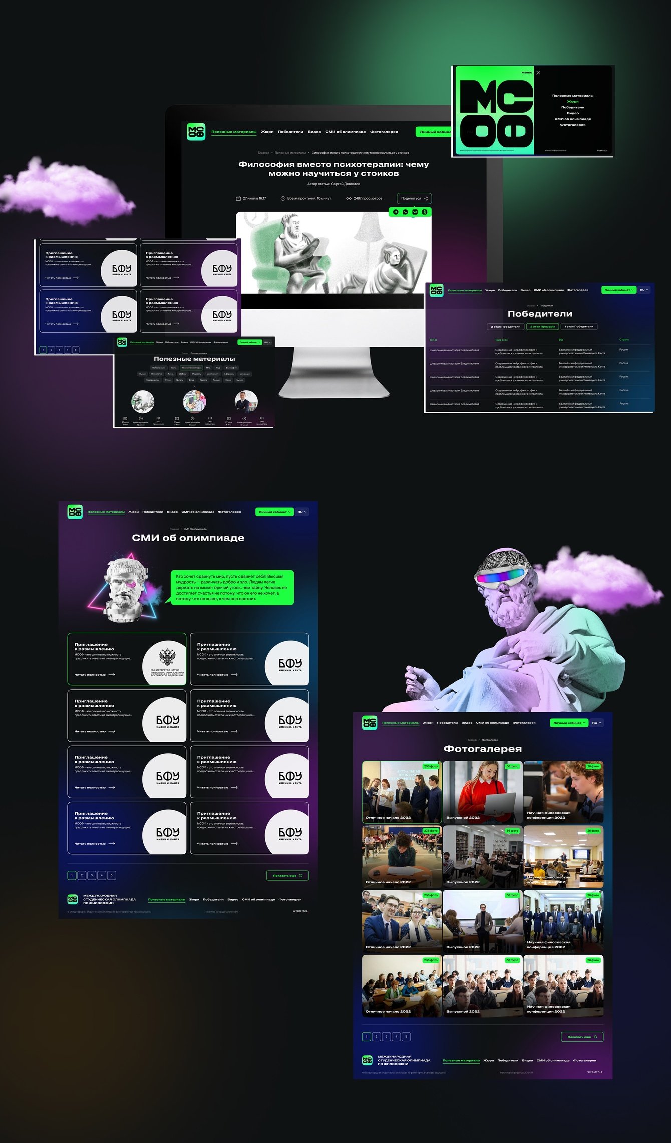 2) разработать на сайте разделы «Баллы», «Победители», «Фото» и «Видео»;