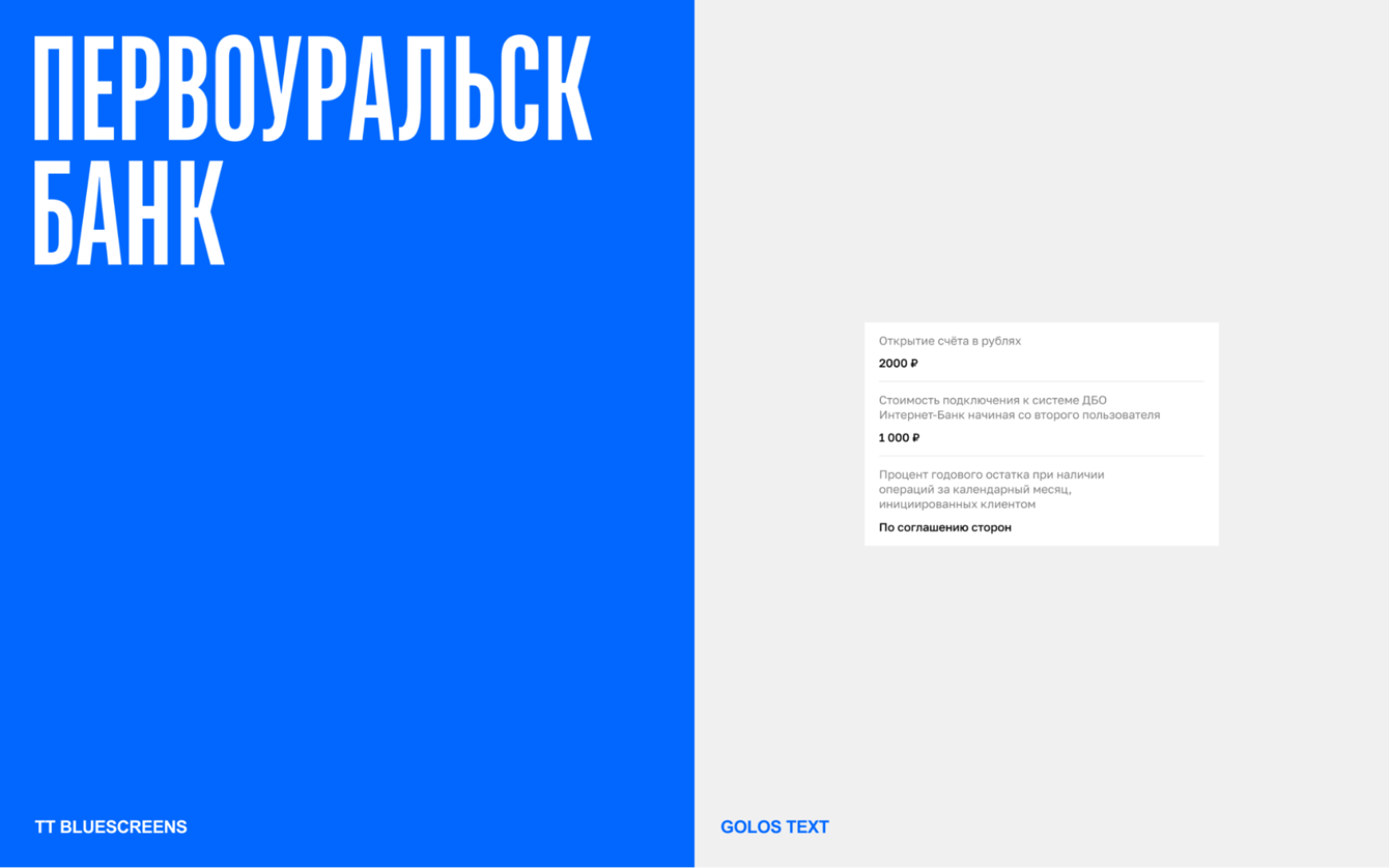 Шрифты для логотипа и заголовков выбрали с учётом длинного названия банка.